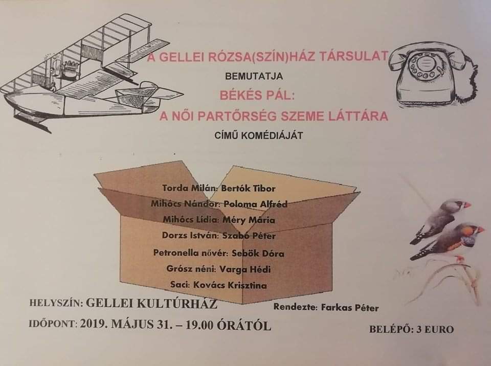 Gellében május 31-én, pénteken 19.00 órakor komédia-premier lesz.