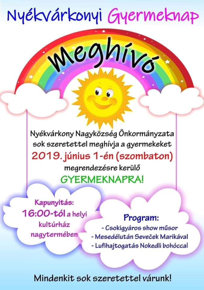 Nyékvárkonyban június 1-jén, szombaton 16.00 órakor gyermeknapot rendeznek.