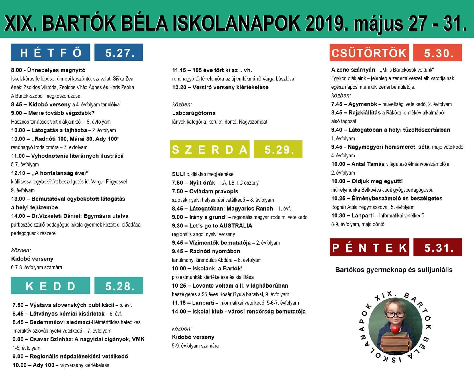 Nagymegyeren május 27-én, hétfőn megkezdődnek a XIX. Bartók Béla Iskolanapok programjai.