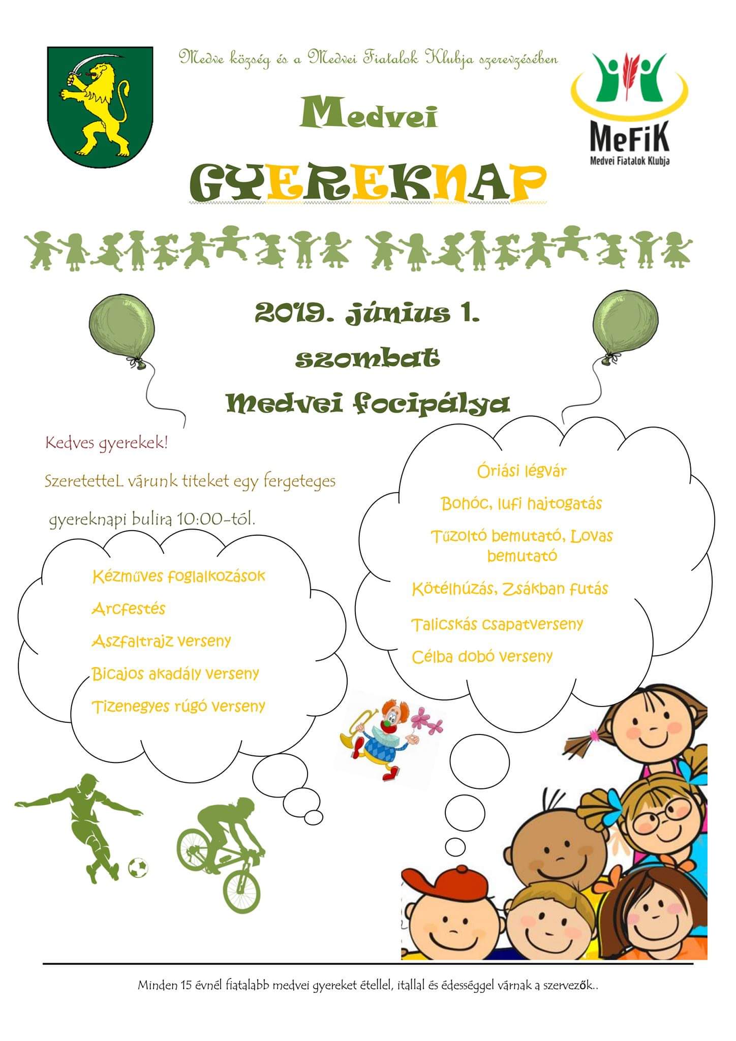 Medvén június 1-jén, szombaton 10.00 órakor gyermeknap kezdődik.