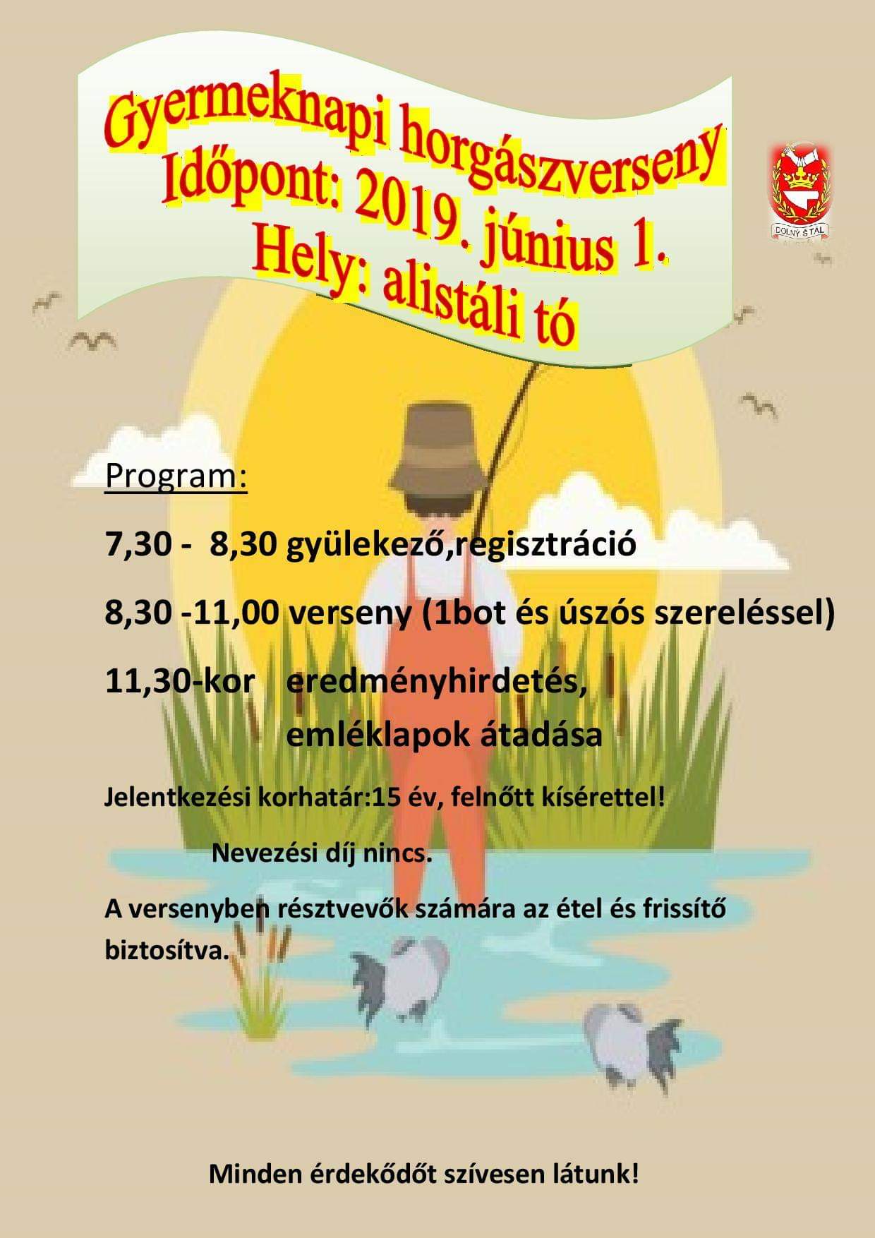 Alistál községben június 1-jén, szombaton 7.30-kor gyermeknapi horgászversenyt tartanak.