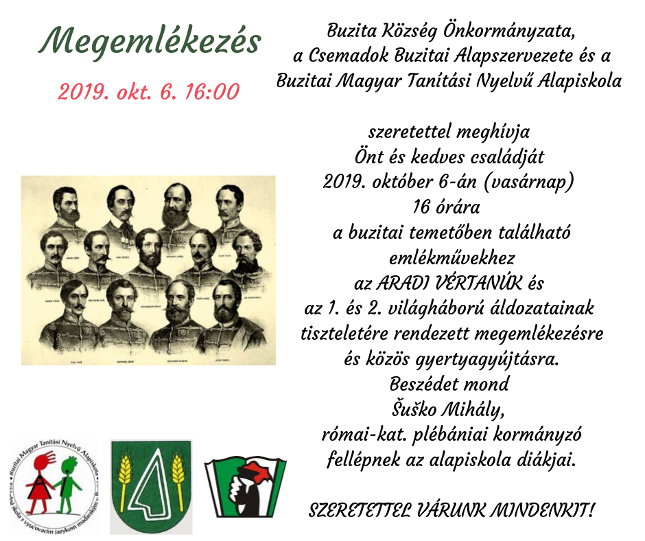 A Helszmann Imre Történelmi Társaság 2019. október 5-én (szombat) 14:30 órakor elhelyezi a megemlékezés virágait a kassai szt. Rozália temetőben az aradi vértanúk napja alkalmából. Gyülekező a temetői kereszt mellett 14.00 órakor.