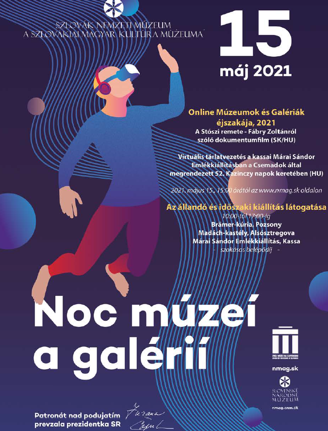 2021. május 15-én, szombaton kerül megrendezésre a minden évben közkedvelt esemény, a Múzeumok és galériák éjszakája, amelyre idén a Szlovák Köztársaság elnöke, Zuzana Čaputová védnöksége alatt kerül sor.