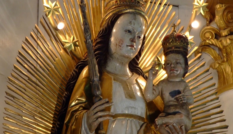 Ez a világ egyik legnagyobb kegyszobra, magassága, a koronát is beleszámítva 2 méter 27 centiméter. A Máriát „Napba öltözött asszonyként”, karjában a kis Jézussal ábrázoló alkotást többször festették újra, mígnem a múlt században megtiltották bármilyen módosítását.
