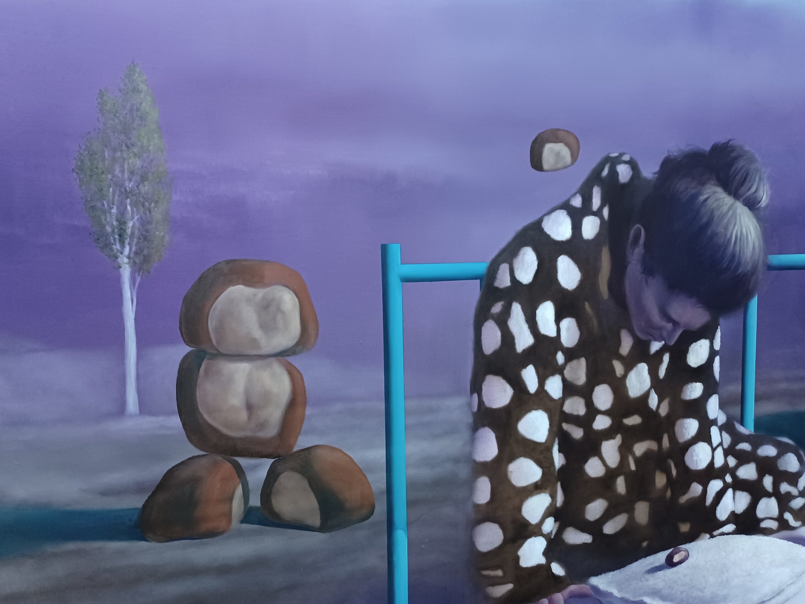 Beszédes kép továbbá a magányos nő is, amint egyetlen szem vadgesztenyét bámul a hófehér párnáján, körülötte vadgesztenye figurácskák a külső világban, melyek talán az egyes idősíkokat ábrázolják, a gyerekkor játékosságától az öregedésig. Ugyanakkor jelen van a nő háta mögött is egyetlen szem magányos gesztenye, ugyanúgy, ahogy a párnáján. Elképzelhető, hogy a kép az életút szakaszának ábrázolásán belül a párkeresés, vagy a megtermékenyülés iránti vágyat akarja hangsúlyozni.