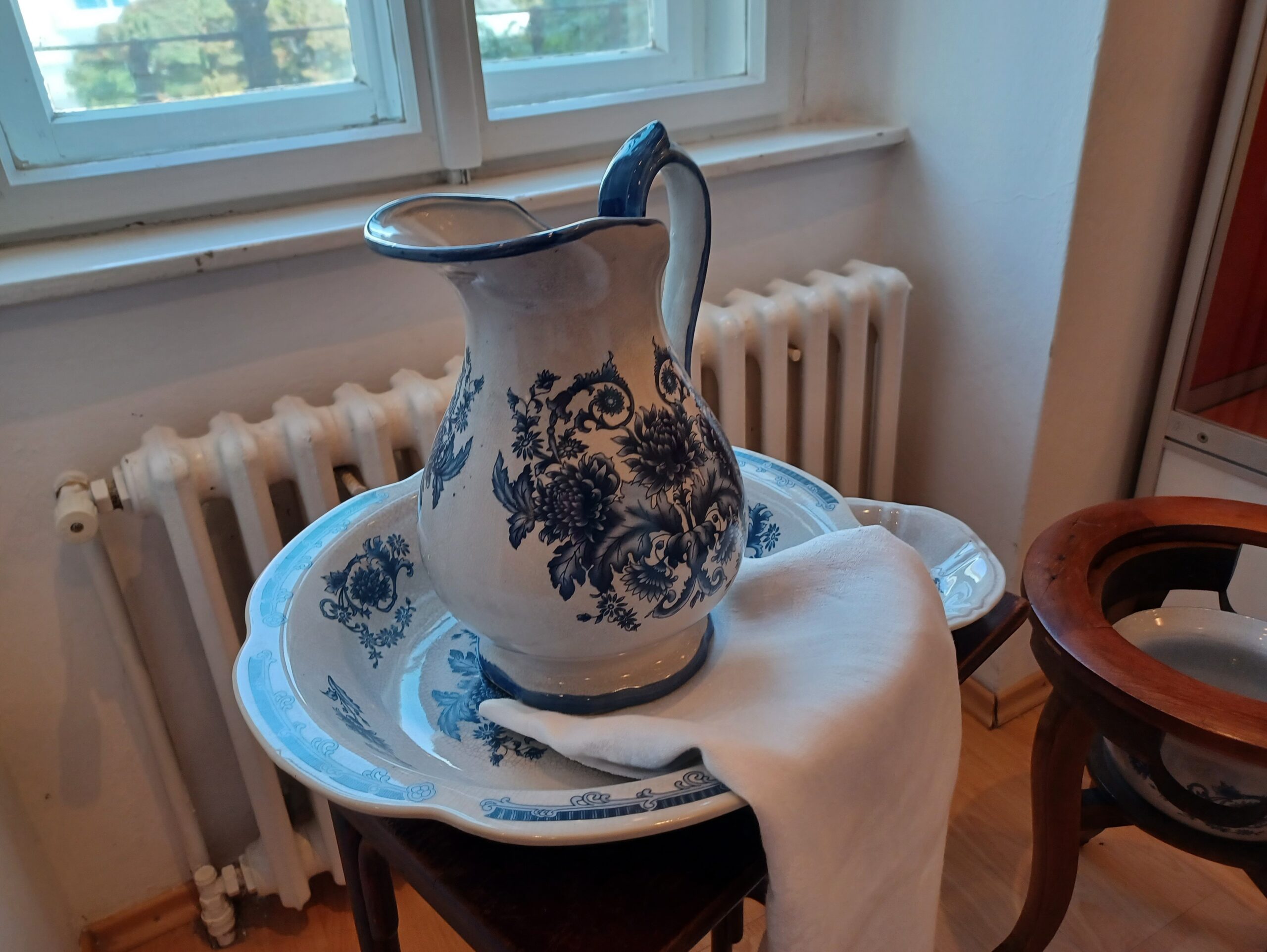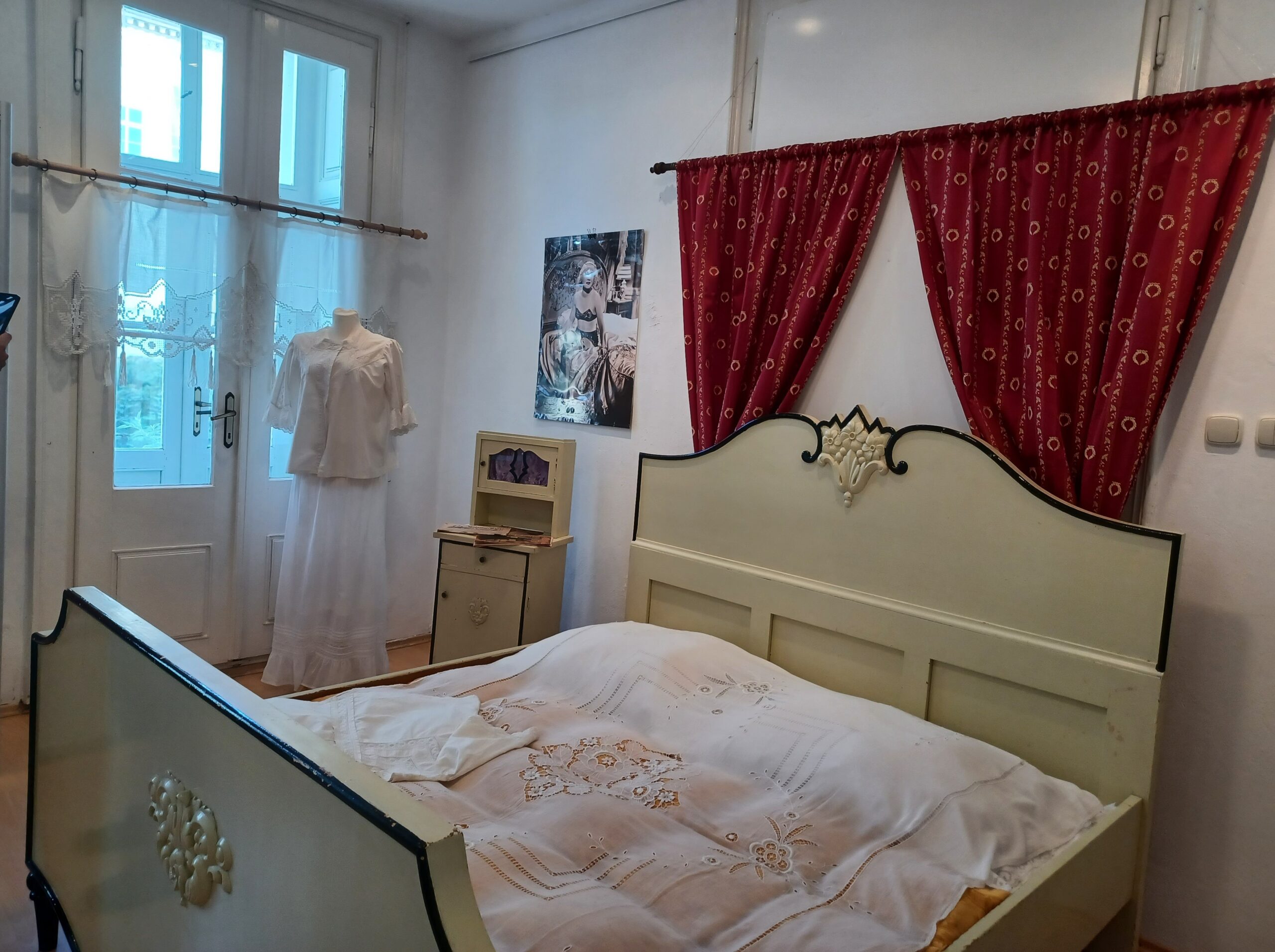 Mindezeken túl egy-egy korabeli bútordarab varázsolja valódi egységgé a tárlatot: láthatunk itt családi ágyat, gyönyörű ágyneművel, hálóinggel kiegészülve, éjjeliszekrényt, elegáns toalett-tükröt fésülködő asztalkával, állványos mosdótálat vizeskancsóval, de éjjeli edényt is, az emberi szükségletek elvégzésére – hiszen az összkomfort általános elterjedése előtt fontos szerepet töltött be ez a kiegészítő alkalmatosság.