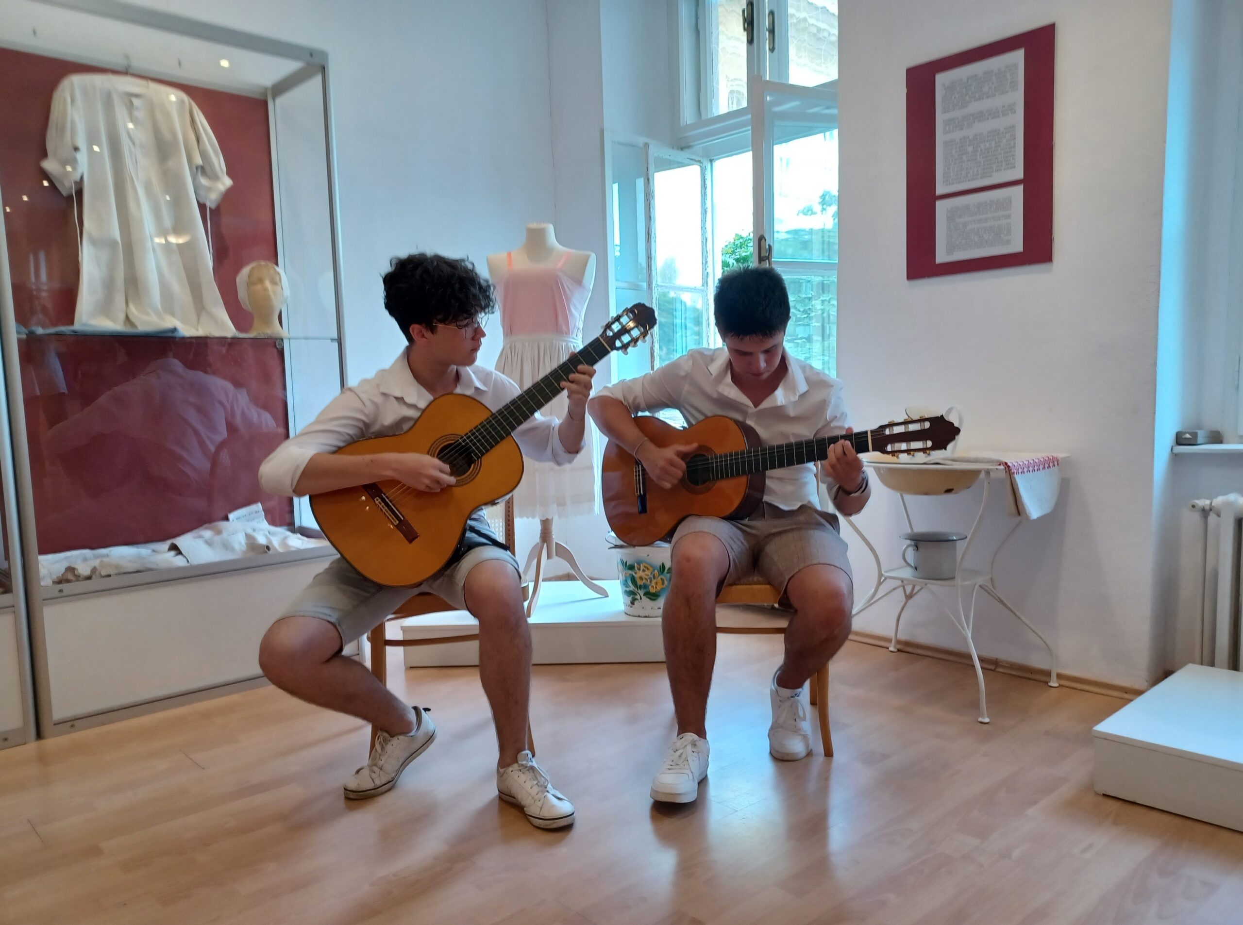 A kiállítás nyitóünnepségét Hevesi Dániel és Hevesi Sámuel, a komáromi Művészeti Alapiskola diákjainak művészi szintű gitárjátéka tette kellemessé. Az ígéretes, ifjú zenészeket Moncz Miklós zeneiskolai tanár készítette fel.