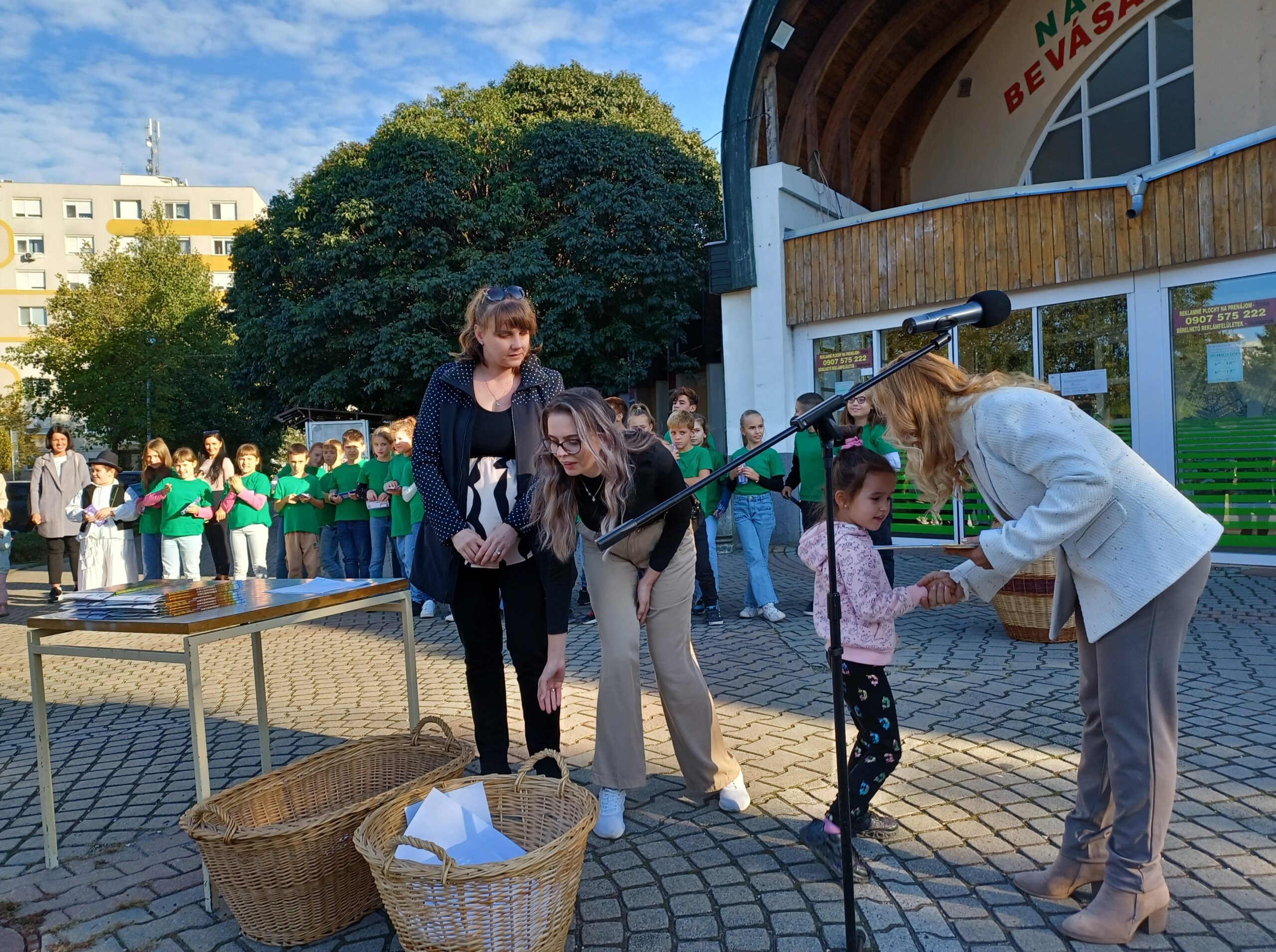 A gyermeklélek-formáló ünnephez a szelíd őszi napfény, a halványkék égbolt, a fehér bárányfelhők megadták a keretet – hangulatos díszletet teremtve a szabadtéri rendezvényhez.