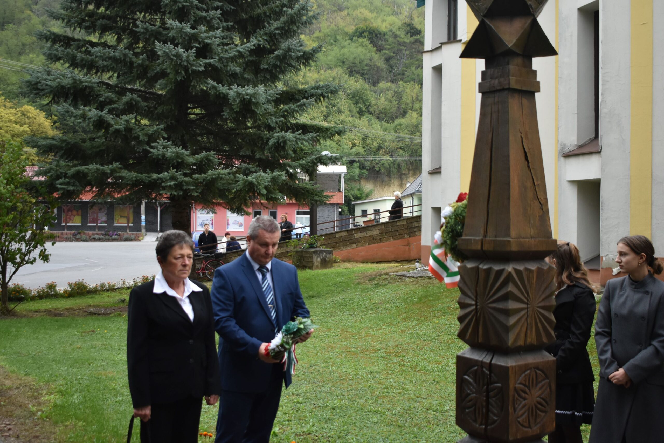 Az emlékezés koszorúit a kopjafához a Csemadok nevében Mikó Alexandra és Chovan Attila, a község nevében pedig Poprocký Ivan polgármester és Szamos Zsuzsanna helyezték el.