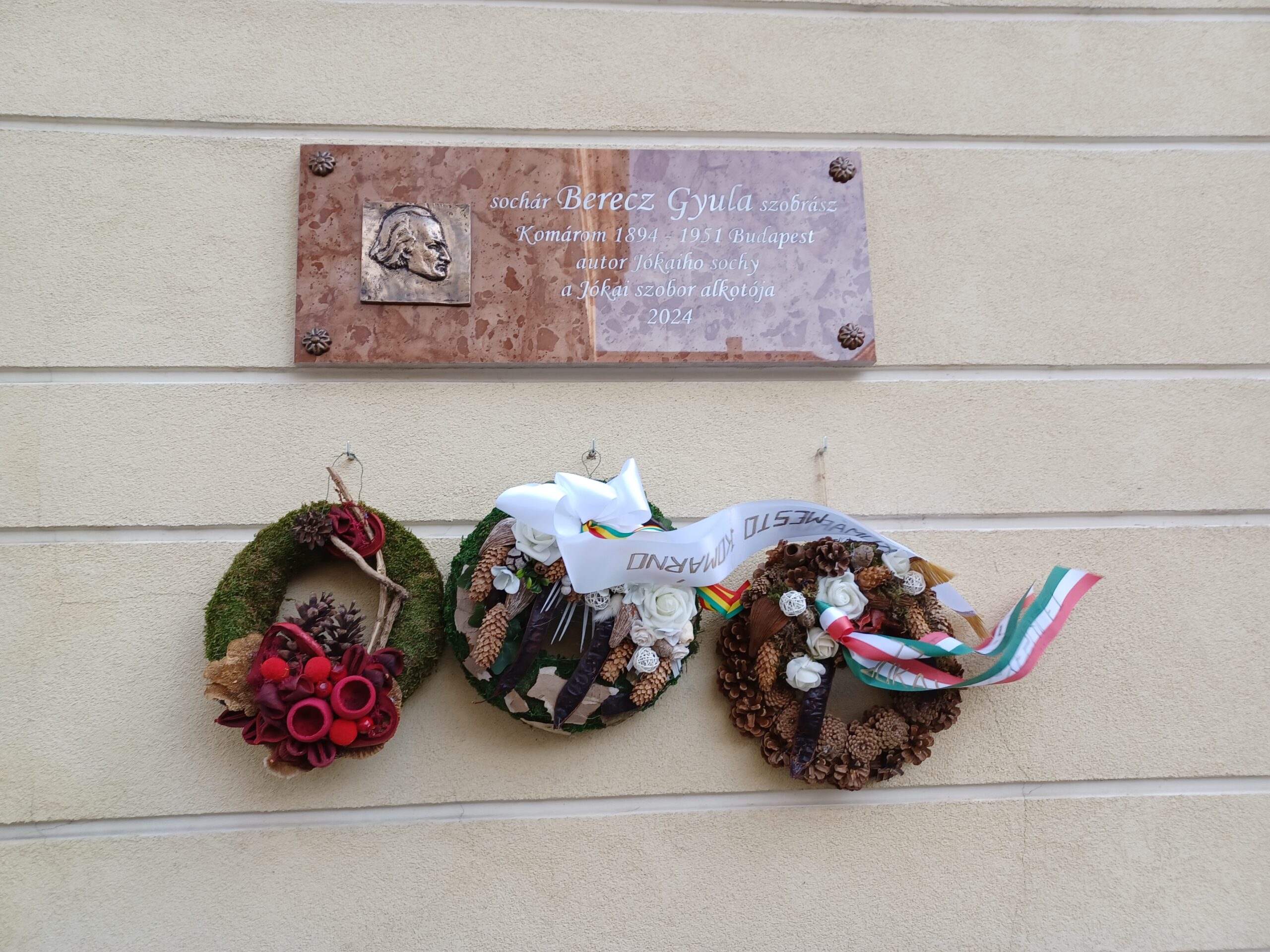 2024. október 20-án emléktáblát avattak Komáromban Berecz Gyula szobrászművész születésének 130. évfordulója alkalmából, a Jókai-szobor szomszédságában, a plébánia épületének falán. Az emléktáblát Nagy János szobrászművész röviddel halála előtt készítette el, emlékezve Berecz Gyulára, akinek tehetségéből, keze munkájából megszületett a város ikonikus értékű szobra, és az összesség tekintetében is az egyik legszebb Jókai-szobor, amely egyébként az írót mesemondóként ábrázolja.