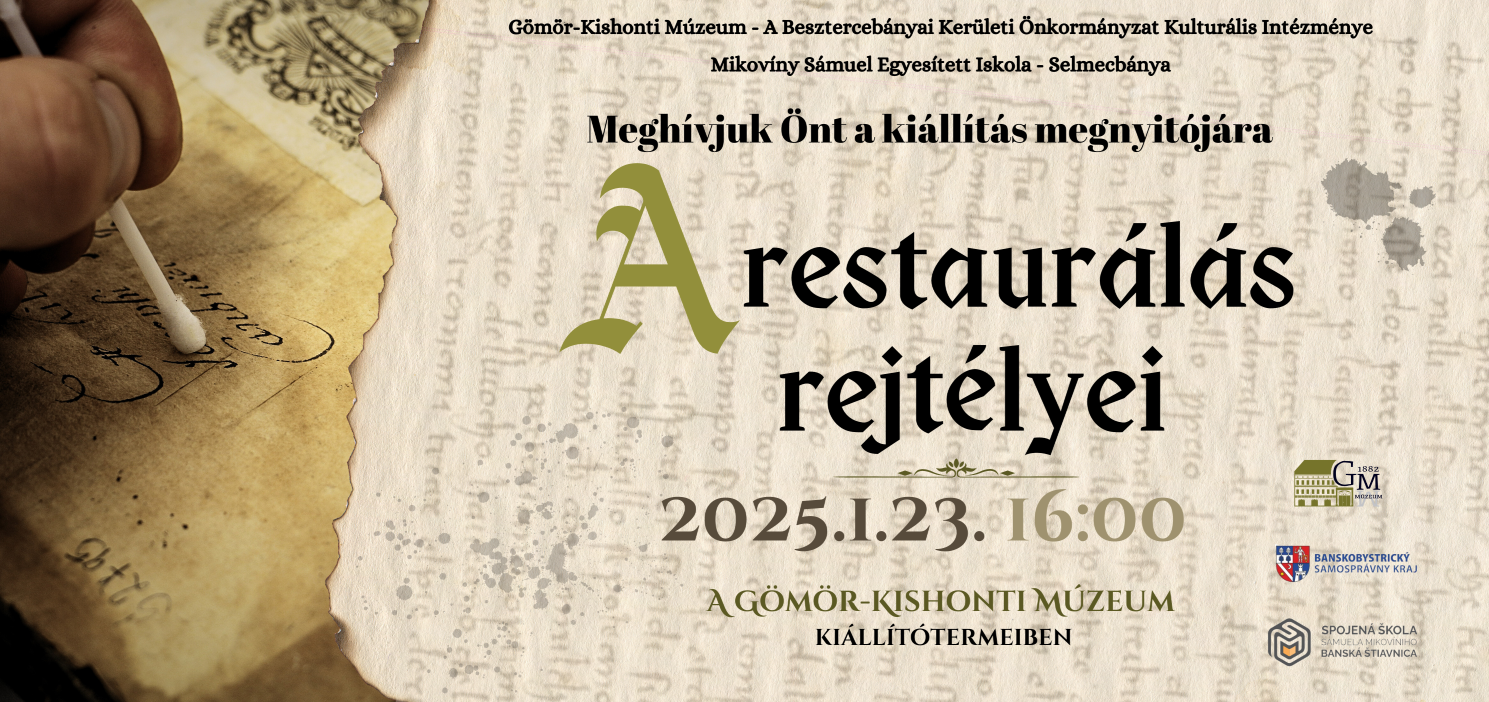A kiállítást a rimaszombati Gömör-Kishonti Múzeum és a selmecbányai Samuel Mikovíni Szakközépiskola közös kiállítása a papírrestaurálásról és könyvkötésről. A kiállítás eredeti történelmi könyvkötéseket és dokumentumokat mutat be, amelyeket a konzerválás és restaurálás szakterület tanárai és diákjai restauráltak, különös tekintettel a papírra, régi nyomtatványokra és könyvkötésekre. Várunk mindekit sok szeretettel!