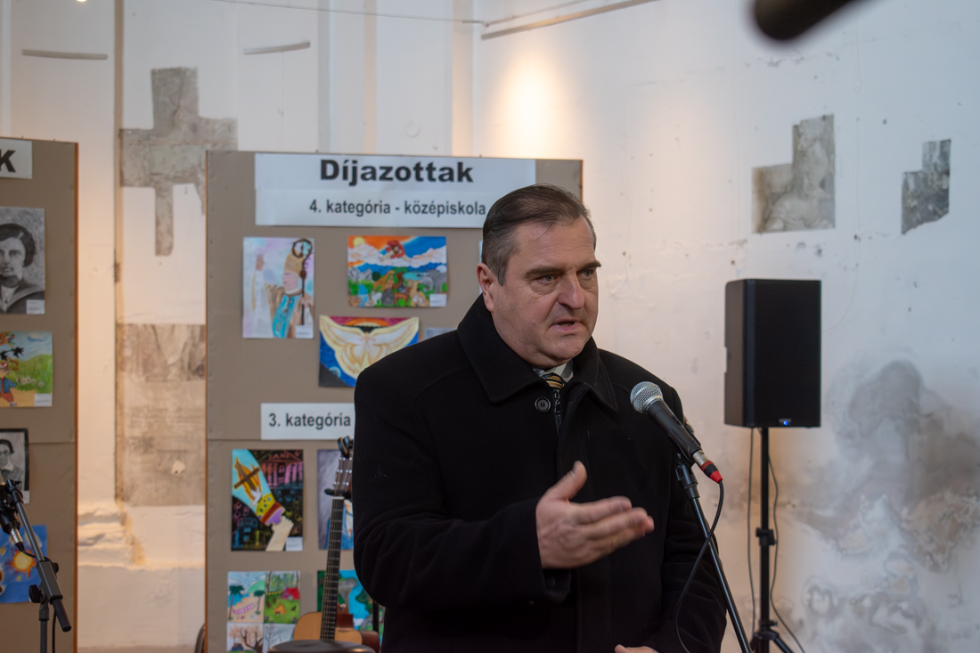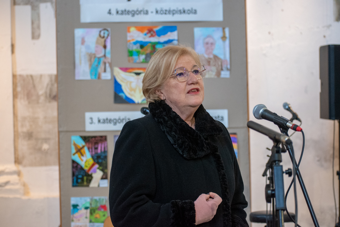 „850 apróság, kicsi vagy nagyobb gyermek fogta a rajzlapot és elkezdett alkotni azokban a témákban, amely a számunkra, és talán a világ számára is az egyik legfontosabb, mégpedig az, hogy milyen a teremtett világ, hogy őrizzük meg a teremtett világunkat, kik azok a kiválóságok – és itt most elsősorban Salkaházi Sára kerül a fókuszba -, akik egyébként ezt a világot, ezt a keresztény világot, ezt a keresztény Európát akarták megőrizni. És ezt szeretnénk átadni a következő nemzedéknek, a gyermekeinknek, unokáinknak, majd ők is a saját gyermekeiknek: hogy van egy közösség, és ez a közösség a felvidéki magyarság. Szeretném megköszönni külön a szülőknek, nagyszülőknek, hogy a gyermekeik magyar iskolába, magyar óvodába járnak, mert számukra fontos ezt a közösséget megőrizni.”