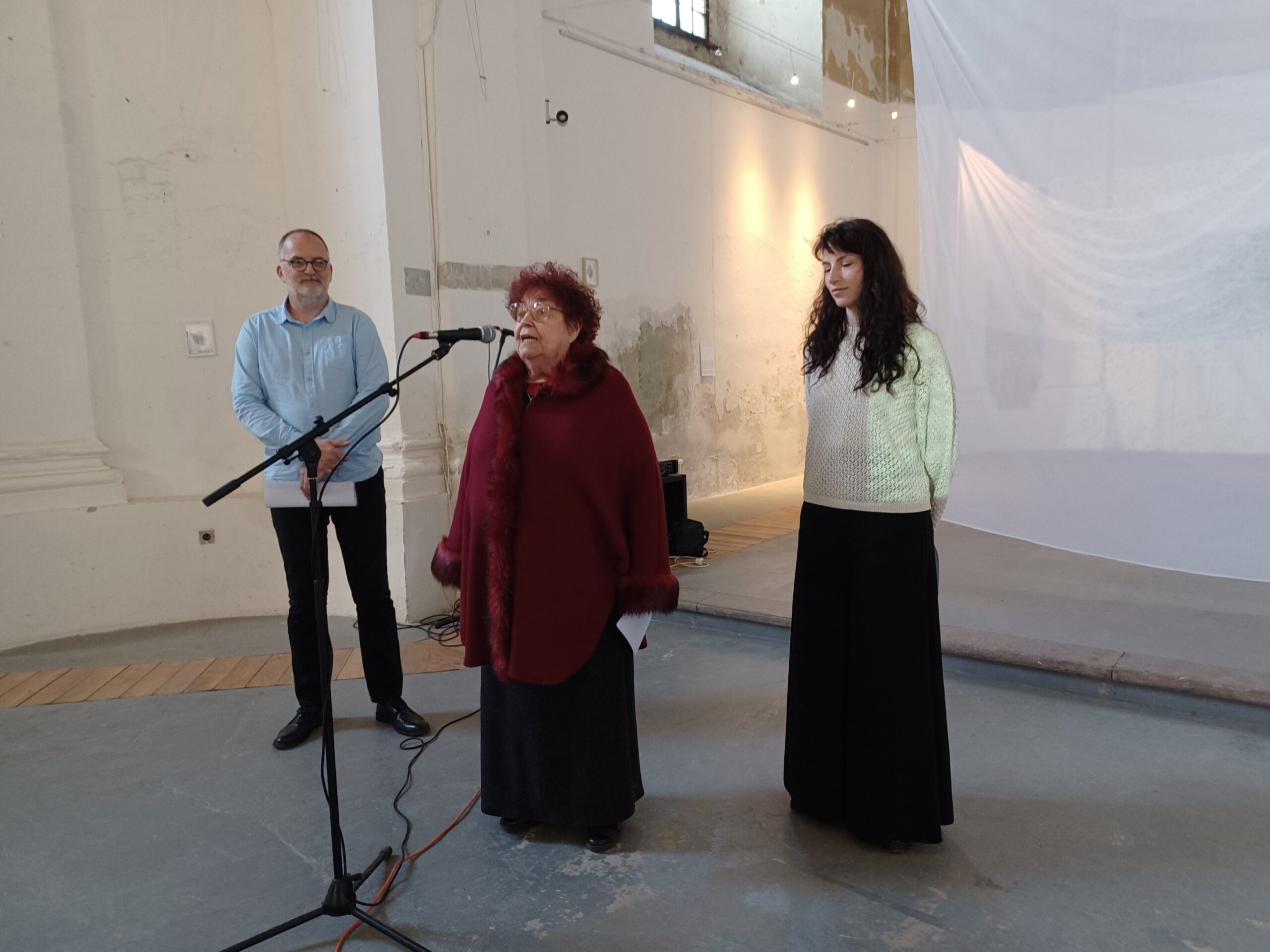 A nyitóünnepségen Farkas Veronika művészettörténész köszöntötte a jelenlévőket, majd röviden bemutatta az ifjú művészt, megvilágítva annak egyediségét, a kiállított alkotásokban felhasznált anyagok sokféleségét, amelyben föllelhető többféle tus, eco- és gyapjúfonál, ipari papír, áttetsző függönyök.