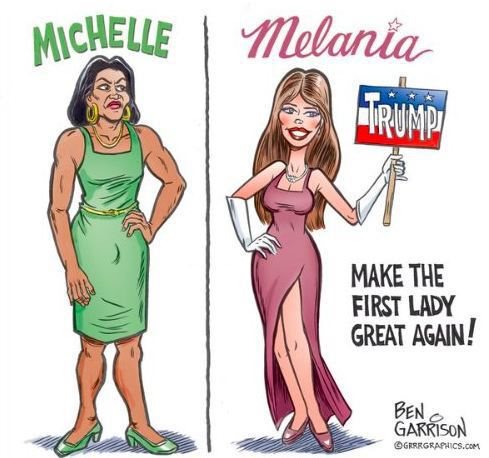 Képzeljünk el egy országot, ahol egy háromszor nősült, botrányos előéletű és finoman szólva is megbotránkoztató nézetek valló milliárdos üzletembert választanak meg az állam élére. Tegyünk mellé egy dekoratív, a világ minden értelemben másik végéből érkező és néha-néha már a biódíszlet határát súroló egykori modellt, akinek a lábainál csak a szája hosszabb.