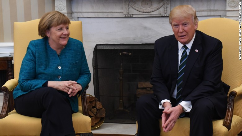 Merkel ezeket az álláspontokat elfogadta, sőt ígéretet tett, hogy Németország teljesíteni fogja a hadi kiadások 2 százalékra történő emelését. Ezen túl azonban kiemelte, hogy a „tisztességes kereskedelmet” támogatja, amibe a VW botrányt ugyanúgy bele lehet érteni, mint Trump azon fenyegetőzését, hogy 35 százalékos vámot vet ki az európai autókra.