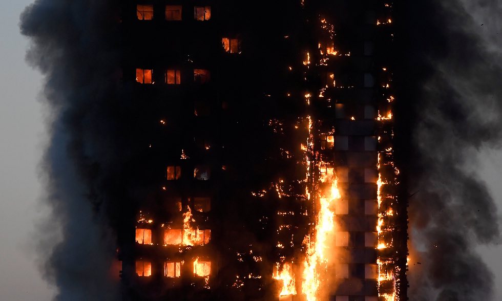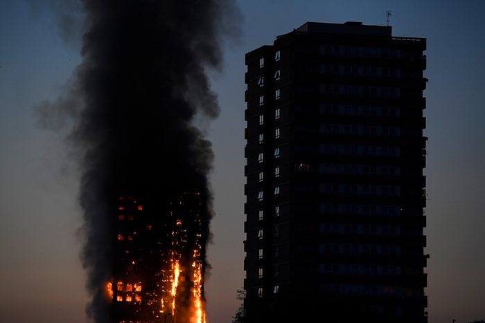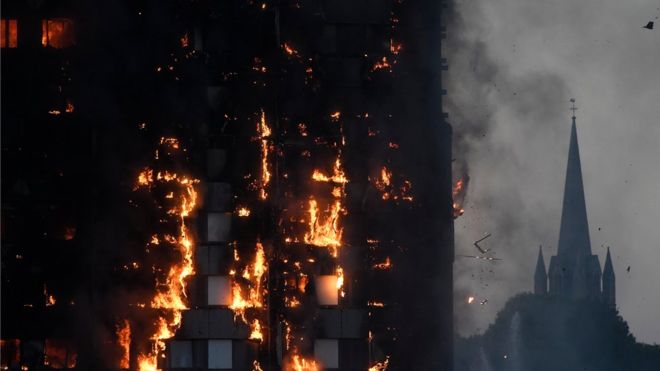 Nyugat-Londonban kigyulladt egy toronyház épülete helyi idő szerint keddről szerdára virradóra, hajnali 1:00 körül. A Grenfel Tower 24 emeletes (más források szerint 27 emeletes) volt és 120 lakást tartalmazott. A hatalmas lángok megfékezésére több mint 200 tűzoltót és 40 tűzoltóautót vezényeltek ki.