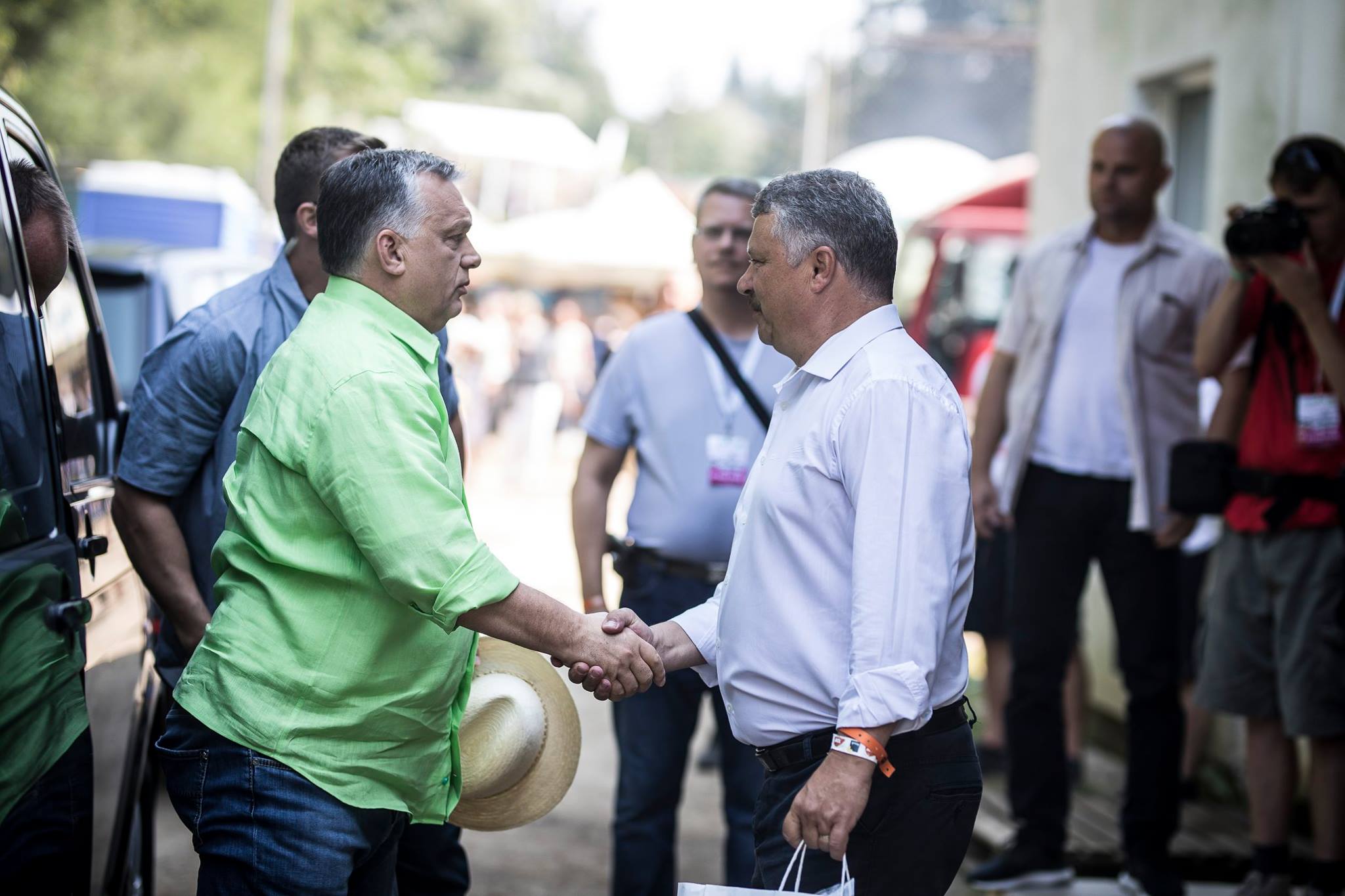 A tűző nap alatti teoretizálás szertefoszlik, mihelyt Orbán Viktor színpadra lép zöld ingjében.