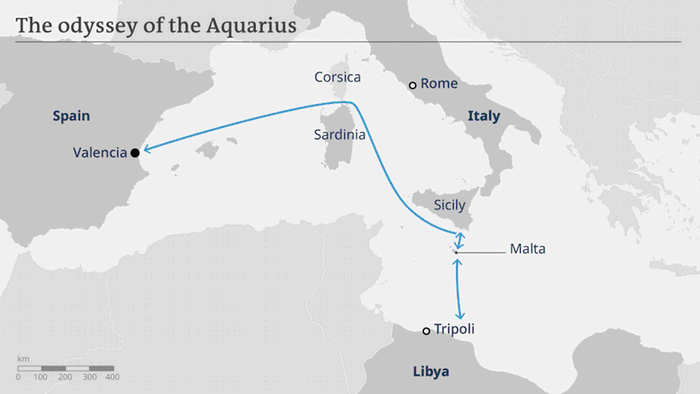 Június 10-én az Aqurius megközelítette az olasz partvidéket, és dokkolási engedélyt kért azután, hogy Málta elutasította. Ám az új olasz kormány bizonyítani akarta, hogy teljesíti választási ígéreteit a migráció vonatkozásában, és elutasította a hajót.