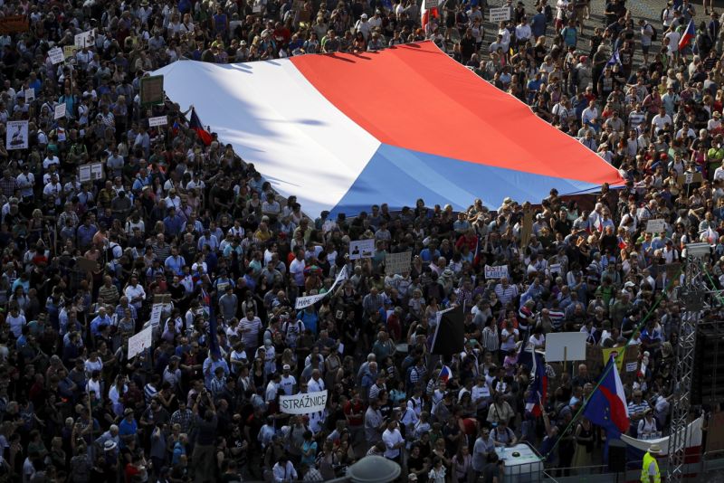 Tegnap este az 1989-es rendszerváltás utáni legnagyobb tüntetésre került sor a prágai Vencel téren.