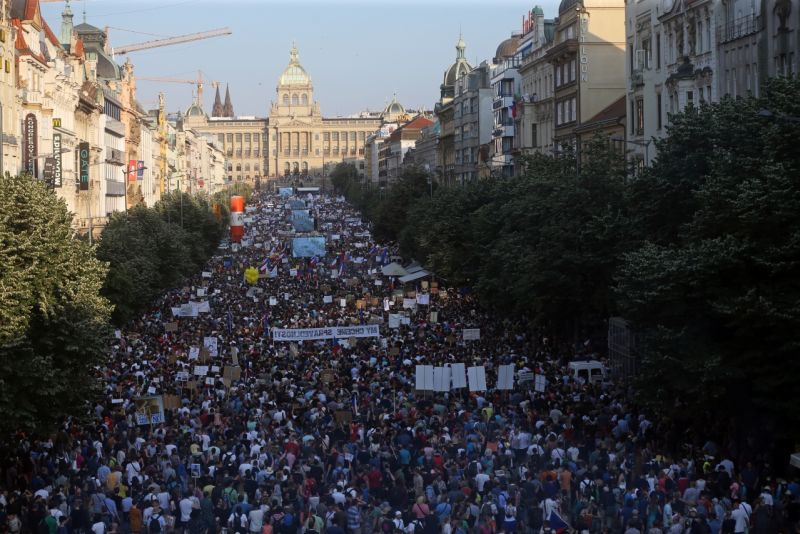 Becslések szerint mintegy 120 ezer tüntető gyűlt össze a Vencel téren, ahol Mária Benešová (ANO-jelölt) igazságügyi miniszter és Andrej Babiš (ANO) kormányfő leváltását követelték.