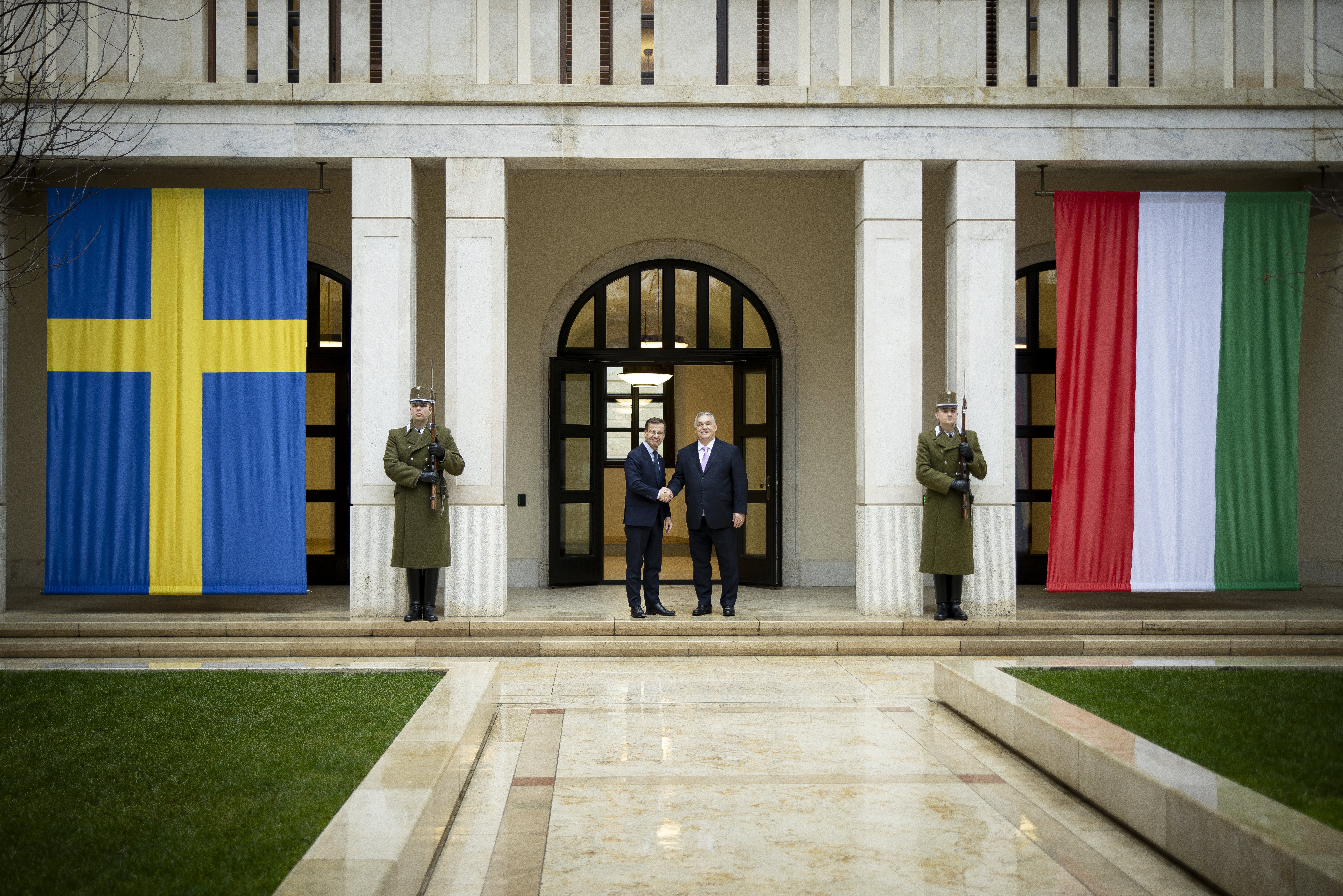Nyitókép forrása: Budapest, 2024. február 23. A Miniszterelnöki Sajtóiroda által közreadott képen Orbán Viktor miniszterelnök (j) és Ulf Kristersson svéd miniszterelnök kezet fog a tárgyalásuk után tartott sajtótájékoztatón a Karmelita kolostorban 2024. február 23-án. MTI/Miniszterelnöki Sajtóiroda/Fischer Zoltán