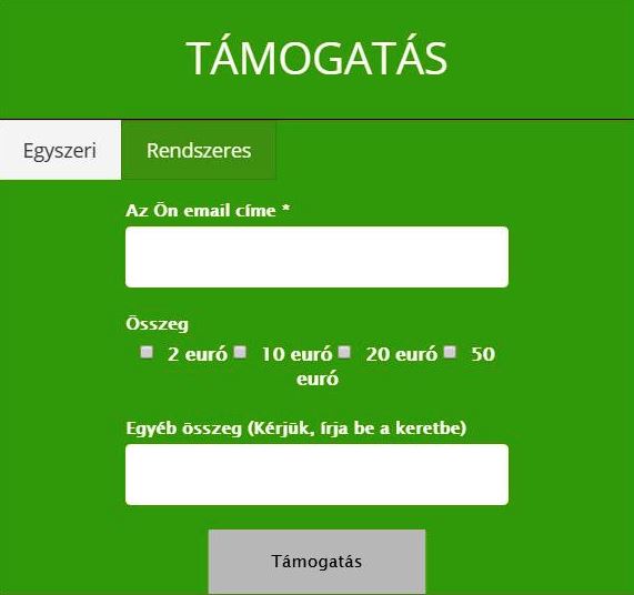 Nagyon egyszerű. A támogatás feliratra kattintva az alábbi keretben tüntessük fel, hogy egyszeri, vagy rendszeres támogatásról van-e szó, majd adjuk meg az összeget és egy email címet. A megadott címre elküldjük a Körkép.sk kiadójának bankszámlaszámát, melyre a felajánlás elküldhető.