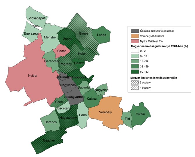 A zoboralji életérzést érzékeltetve itt van még egy történet. Az egyik községi hivatalban jártunk, amikor Marika néni nagy örömmel jegyezte meg, hogy az összes hivatali alkalmazott és a polgármester is a tanítványa volt a magyar iskolában. Ennek megfelelően szépen el is beszélgettünk magyarul mindenkivel, a sokk akkor következett, amikor a szemünk láttára váltottak egymást közt szlovák nyelvre. Csitáron (a térképen technikai okból még Nyitra részeként látható, mostanra önálló település) és Gerencséren igaz, hogy az alkalmazottak jó része és a polgármesterek magyarok (vagy tudnak magyarul), és a hivatali kétnyelvűség is elég magas szintet képvisel (utcanév, információs és településtáblák, hivatal feliratai), viszont a gyerekek a családokon és a – magyarul is „beszélő“ – óvodán kívül már nem nagyon hallanak magyar szót; ezzel összhangban alig van magyarul beszélő 20 éves fiatal.
