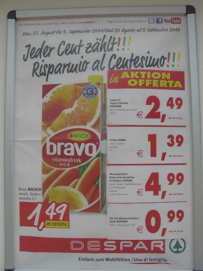 Ennek illusztrálására a nyári hónapokban elutaztunk Dél-Tirolba, az olasz Alpokba, ahol népes németül beszélő osztrák kisebbség él. Az alábbi fényképek illusztrálják mindazt, amit a honi kétnyelvűségért mozgalom aktivistái is szorgalmaznak: Dunaszerdahelyen, Komáromban, Somorján, Párkányban, Ipolyságon, Rimaszombatban, Füleken, Szepsiben, stb. Mindenhol, ahol megfelelő létszámú szlovákiai magyar állampolgár él.