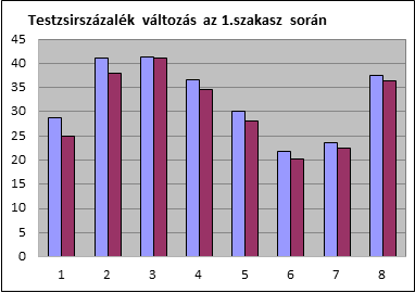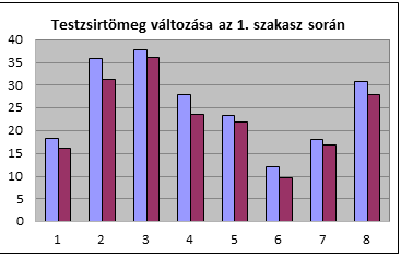 Diagramos ábrázolás a 8 személy testzsírtömeg és testzsír-százalék változásáról személyenként: