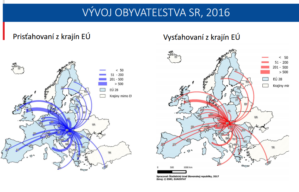 Régiós összehasonlításban elmondhatjuk, hogy Pozsony, Kassa és Eperjes megyékben a legnagyobb a természetes népszaporulat, miközben Trencsén és Nyitra megyékben negatívba fordul (bal felső térkép). A bevándorlás Pozsony és Nagyszombat megyébe a legmagasabb, nem túl népszerű célpont Besztercebánya és Eperjes megye (jobb felső térkép).