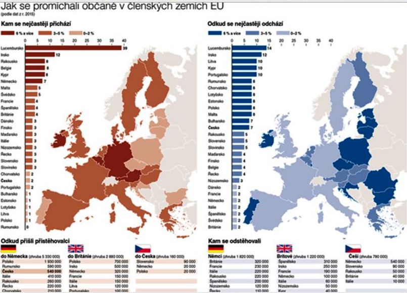Említésre érdemes az is, hogy az Európai Unióban a legnagyobb létszámú „eumigránsot” befogadó Nagy-Britanniából, Franciaországból, Németországból és Spanyolországból sokkal kisebb ellenkező irányú népvándorlás tapasztalható. A felsorolt államokból a saját lakosok alig 2 százaléka kelt útra más EU-tagállamba.