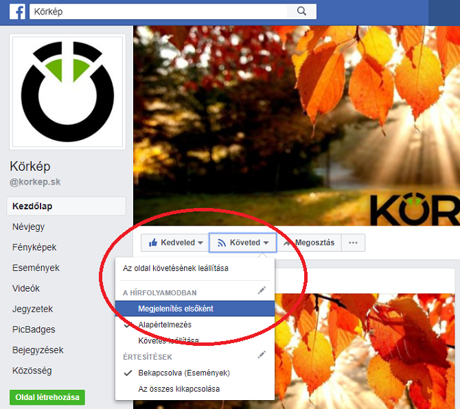 Akik inkább kihasználnák az új funkciót, azok a rakétás ikonon keresztül is állíthatnak be egyfajta sorrendet a már követett oldalak között. Elég csak ellátogatni fb-oldalunkra, és a mellékelt ábra szerint beállítani a Körképet „elsőnek”.