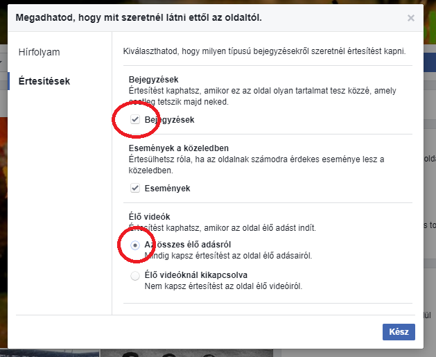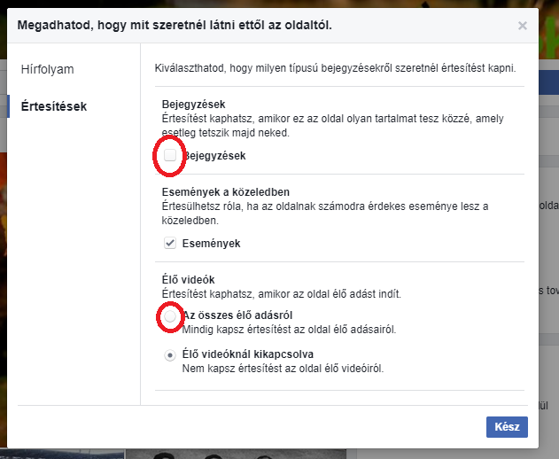 Második lépés – Alapesetben a két pirossal jelölt rész nincs kipipálva. A ‘Bejegyzések’ kiválasztásával Ön értesítést kaphat az olyan, a Körkép által közzétett cikkekről, melyek „esetleg tetszenek Önnek”.