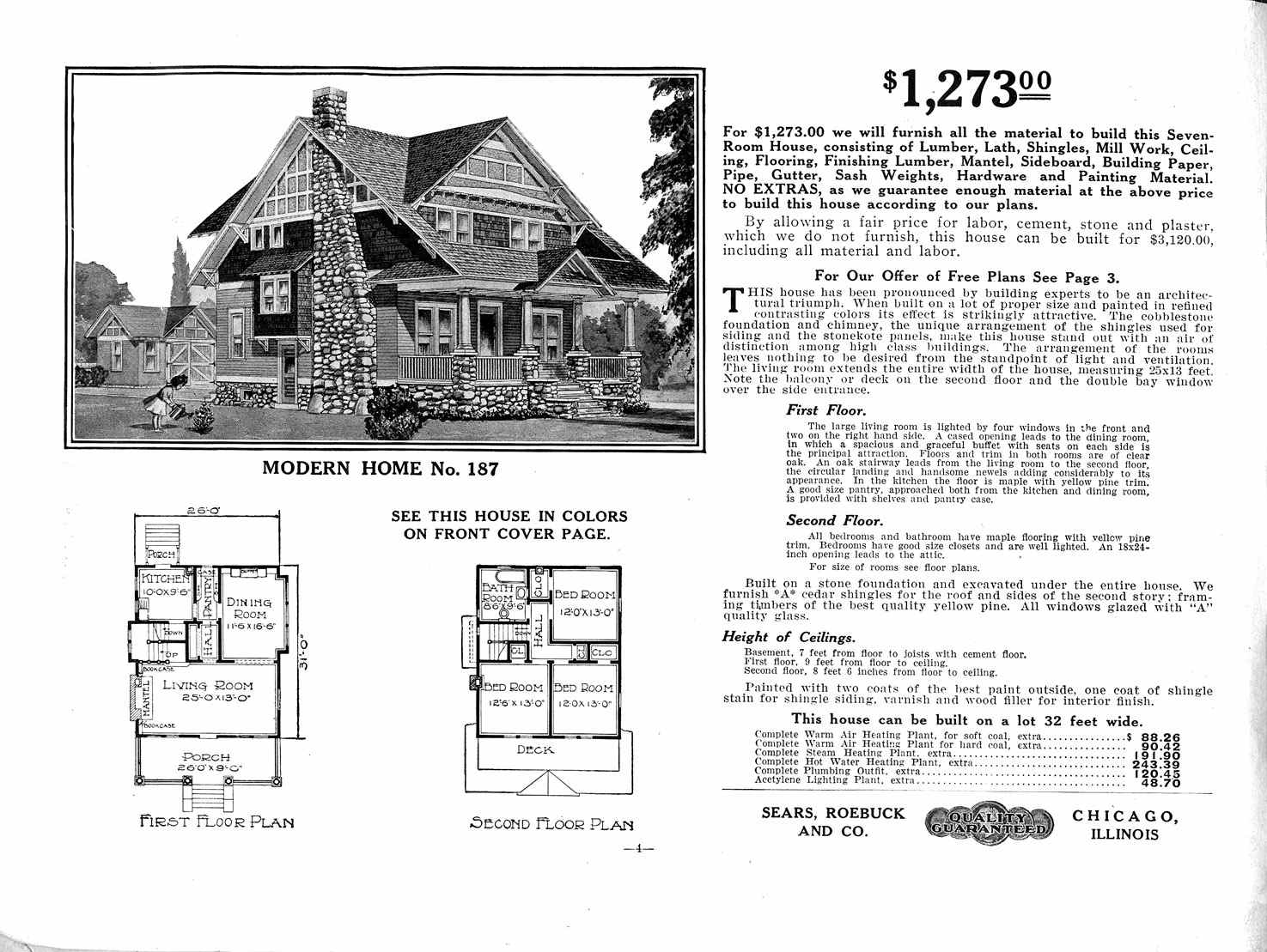 Az összesen mintegy 30-40 ezer elemet tartalmazó, 20-25 tonnás óriási küldemények vasúton, majd ha elfogyott a sín, teherautón kerültek a helyszínre. A házakat, a megrendelő pénztárcája szerint, lehetőség volt a századelő minden technikai vívmányával felcicomázni: elektromos hálózat, központi fűtés, vízvezeték, angol vécé és még sok egyéb dolog sorakozott az extrákat tartalmazó hosszú listán. Egy átlagember alig három hónap alatt végezhetett is az egésszel, legalábbis ezt állították a Searsnél, valójában a házak felét kivitelező cégek építették fel a megrendelőknek. A másik fele ugyanakkor ügyes kezű családapák, egymást segítő rokonok és kis közösségek munkáját dicsérte, valahogy úgy, ahogy nálunk volt szokás építkezni a szocializmusban.