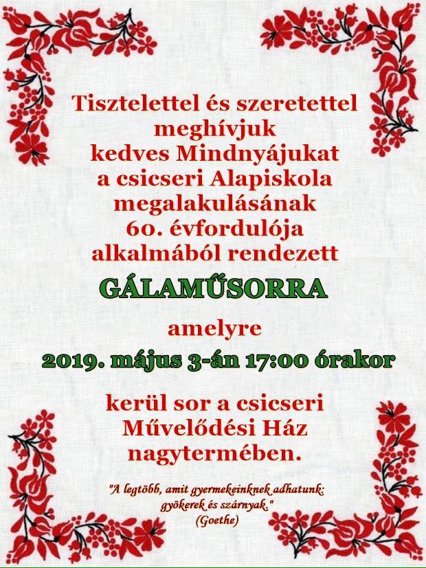 Gálaműsor a csicseri Alapiskola megalakulásának 60. évfordulója alkalmából