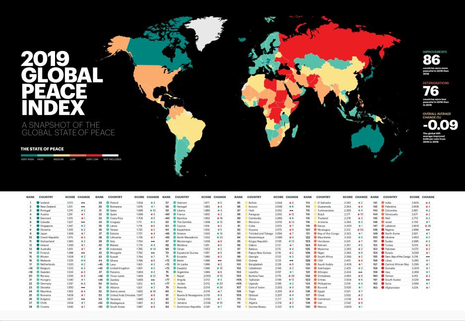 Öt év után a világ ismét valamivel biztonságosabb hellyé vált, de az előző évtizedekkel összehasonlítva továbbra sem túlságosan békés – derült ki a legújabb Globális békeindexből (GPI).