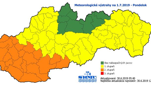 A hét elején is kitart a hőség, sőt, úgy néz ki tetőzik az országba betoluló meleg levegő hőmérséklete. A Szlovák Hidrometeorológiai Intézet (SHMU) Szlovákia dél-nyugati részére másodfokú riasztást adott ki a rendkívüli hőség miatt, mivel az előrejelzések szerint a legmagasabb nappali hőmérséklet a térségben elérheti a 37 Celzius-fokot.