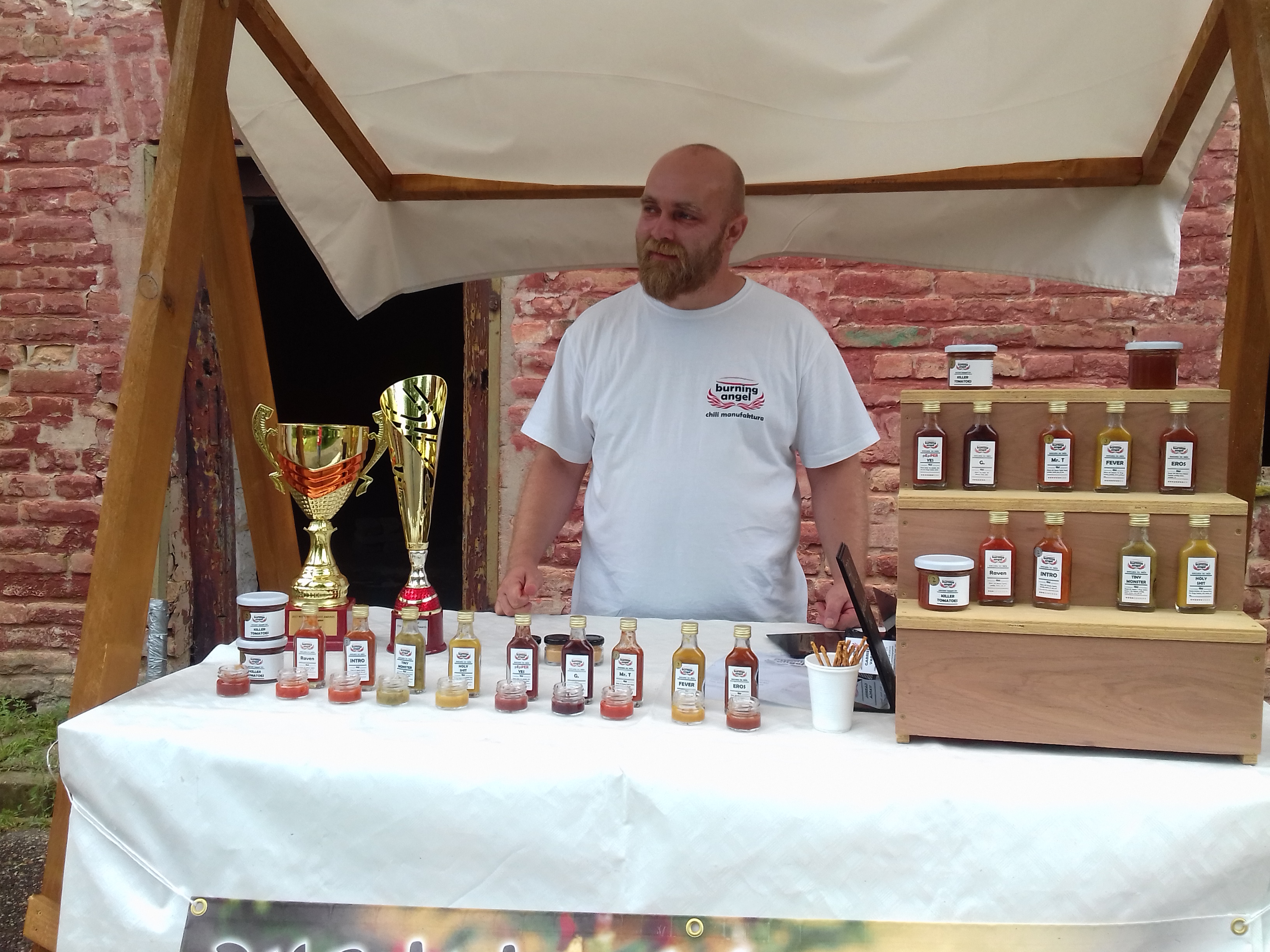 A következő asztalnál megint egy ételkülönlegesség kínálta magát többféle változatban. A Burning Angel Chili díjnyertes, tüzes, vagy éppen édeskés csili-szószait kóstolhatták végig az érdeklődők.