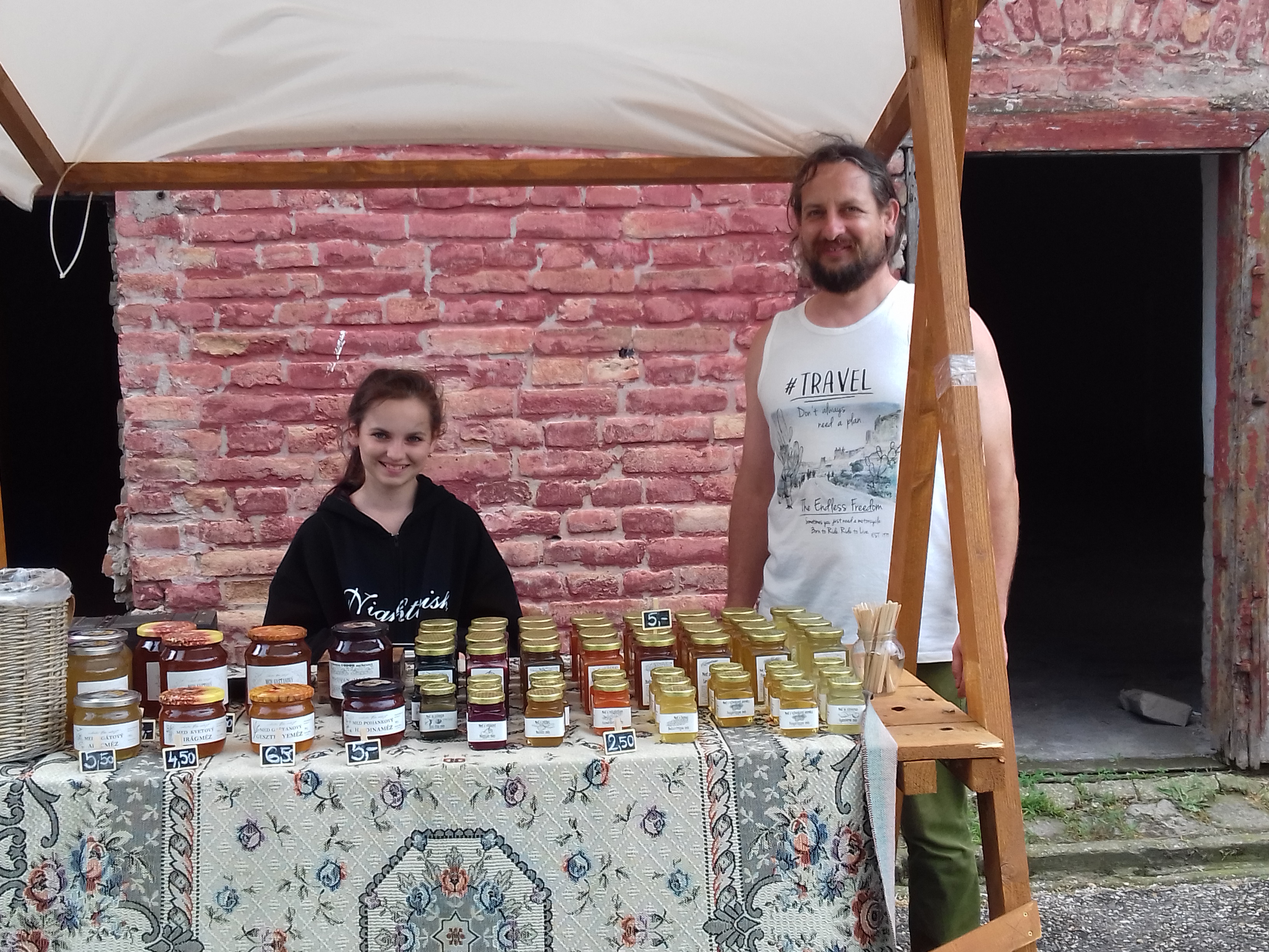 Az utolsó vásári standnál a gyönyörű madari dombok közül érkezett Szabó Méhészetet találtuk, akik a méz sokfélesége mellett nagyon finom hideg mézborokat is kínáltak.