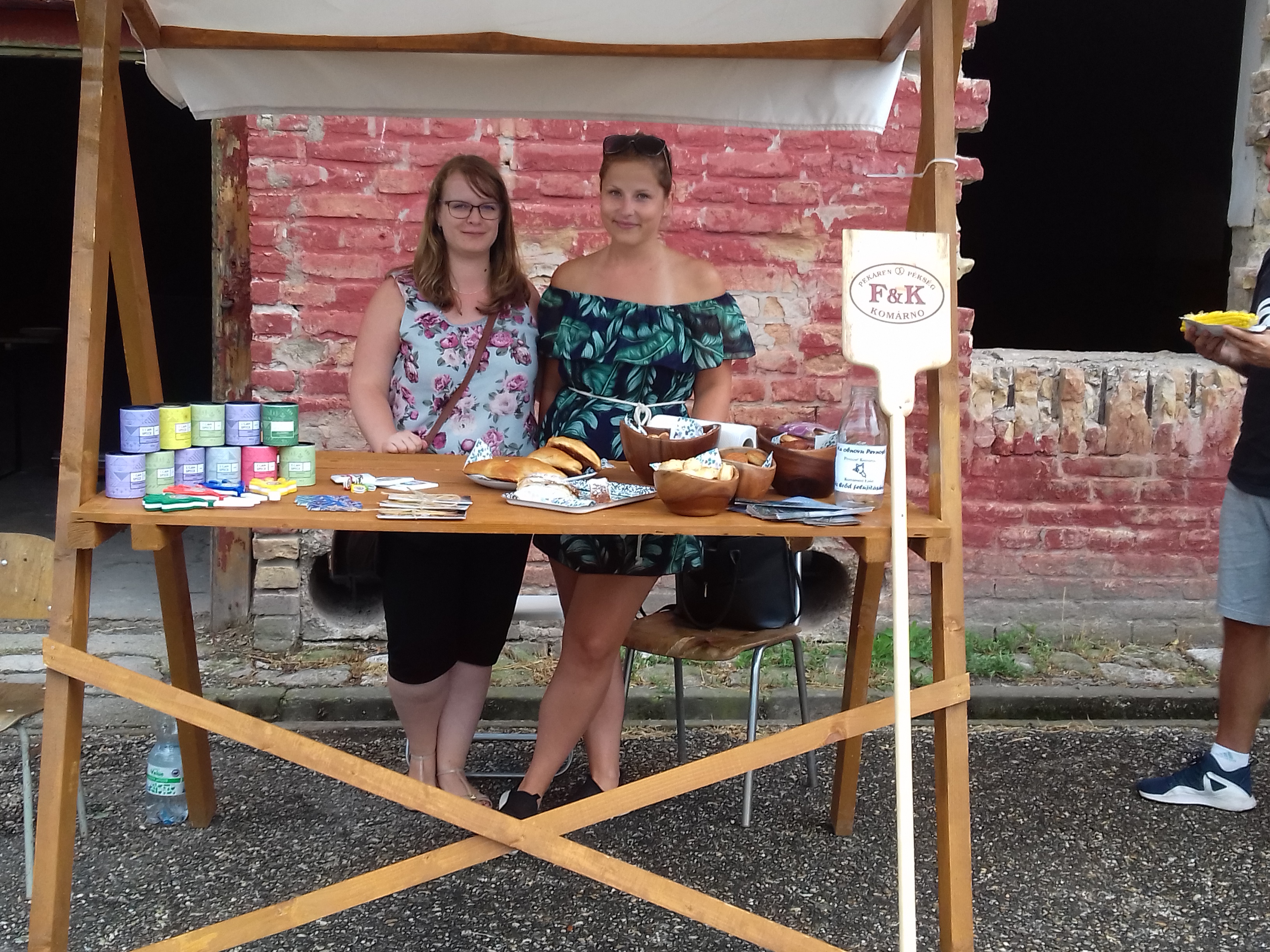 A legelső vásári asztalkánál a A Dunamente turisztikai szervezet információs pultja kapott helyet, melynek alkalmazottai vállalták, hogy a komáromi F&K Pékség finom péksüteményeit is felkínálják a vásárra érkezőknek.