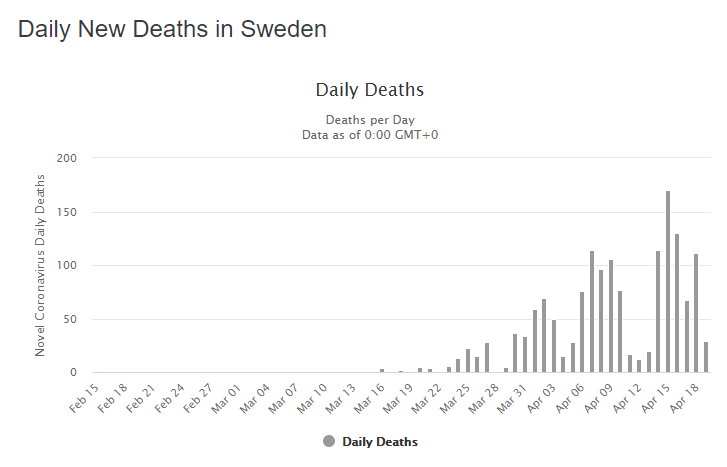 Mert a svédek lényegében igyekeznek egyensúlyt találni a gazdasági károk és az említett több ezer emberélet között, és ennek rendelték alá az összes meg(nem)hozott intézkedést. A járvány gyors lefolyására játszanak, ami azt jelenti, hogy a fertőzöttek és a halálesetek száma gyorsan eléri a maximumát. És bár Dél-Európához képest nyilván sokkal jobb a helyzet Svédországban, az elég ellentmondásos gyakorlat most mintha kezdené megmutatni negatív hatásait.