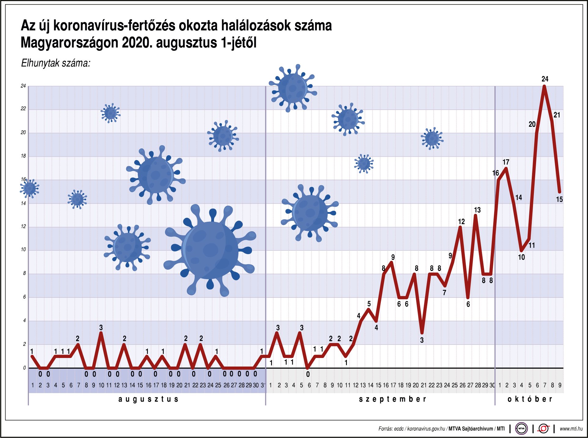 A kormányzati portálon azt írták: 35 222-re nőtt a Magyarországon azonosított fertőzöttek száma. Az elhunytak száma 913-ra emelkedett, 9202-en már meggyógyultak.