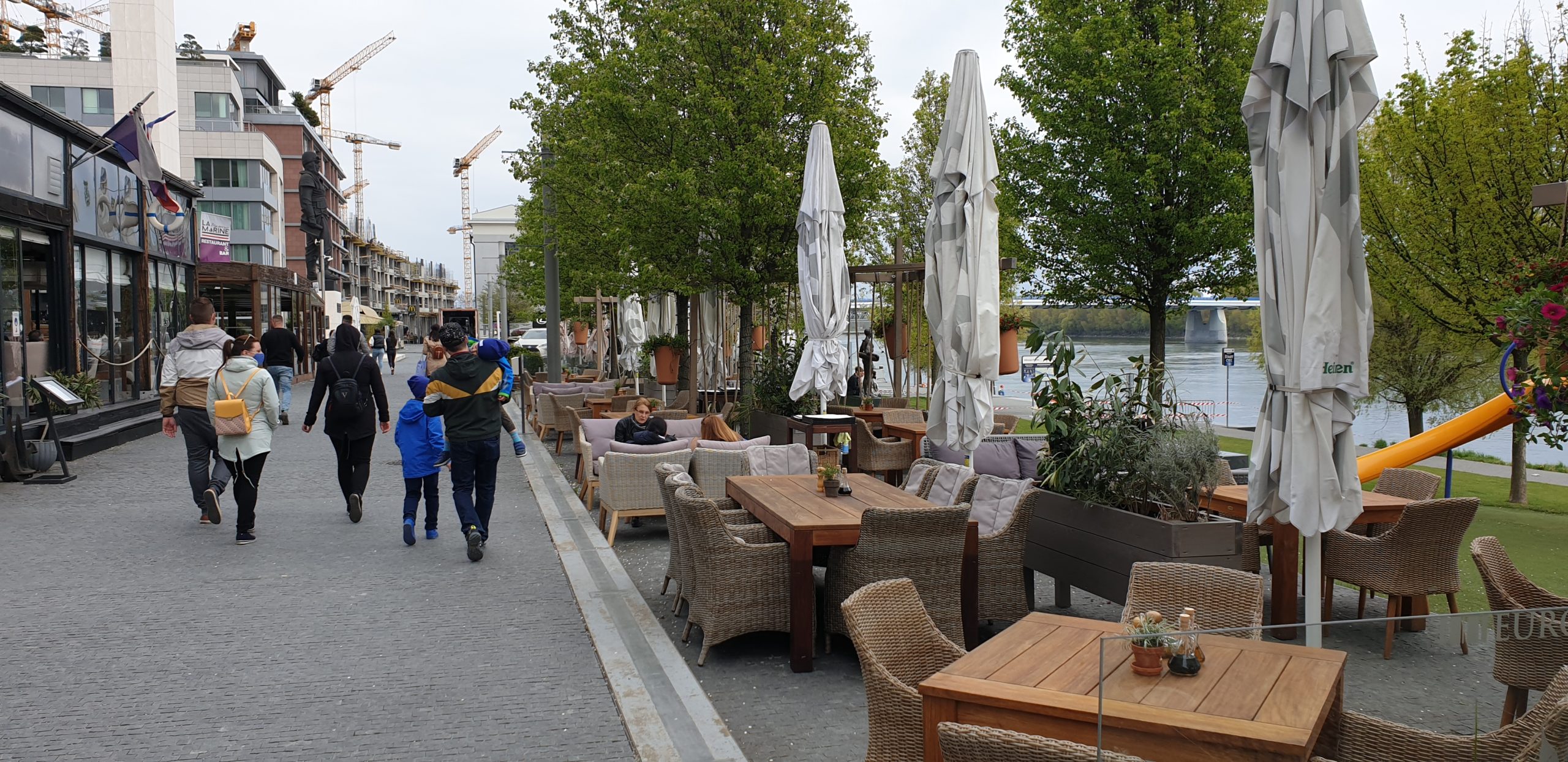 A Dunapart és az Eurovea környéke az egyik legmenőbb hely Pozsonyban. Tele drága, de hangulatos éttermekkel. Teraszaik egyelőre kissé álmos hangulatban várják a vendégeket.
