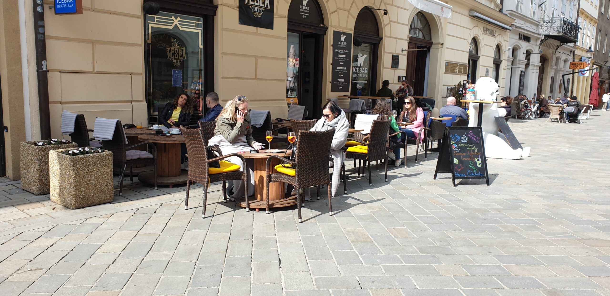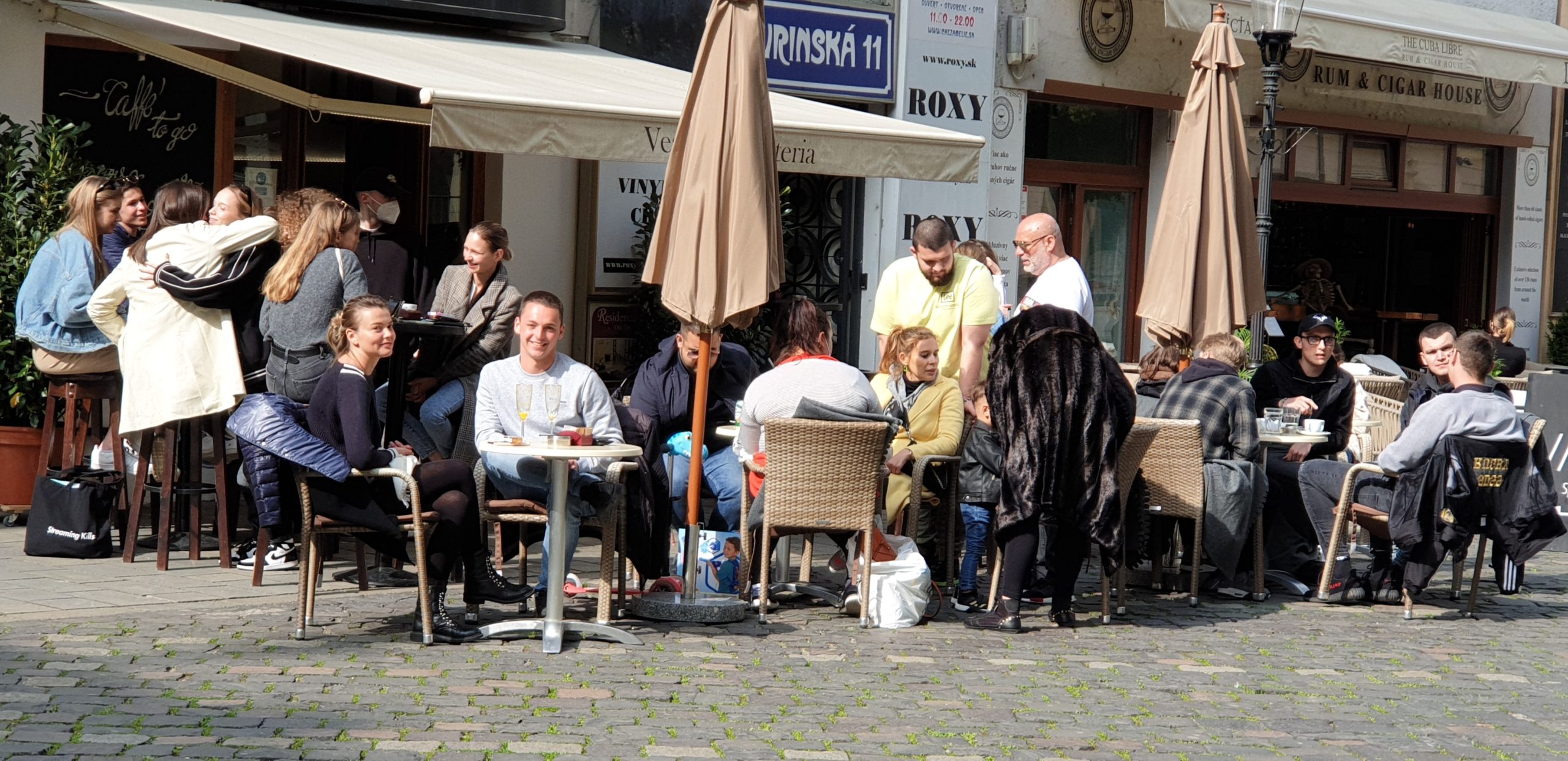Szlovákiában ezzel ellentétben a munkahét első napján, április 26-án nyithattak meg újra a teraszok és az edzőtermek. A borult, szeles idő miatt azonban egyelőre elmaradt a várt roham. Délután 3 óra tájékán, tehát még bőven a munkaidő letelte előtt a főváros legmenőbb helyein is legfeljebb gyülekeztek az emberek.