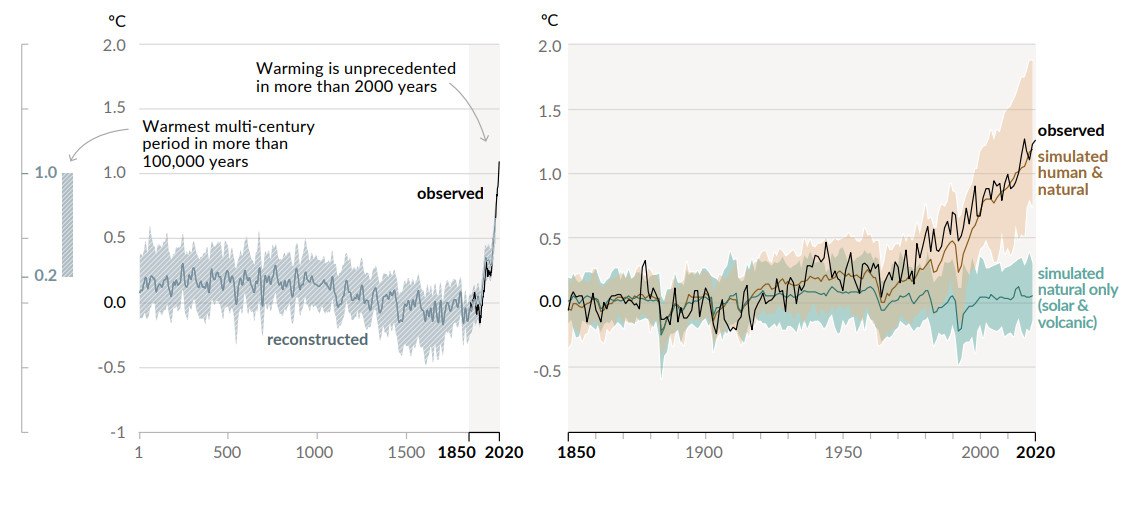 Mindez csak néhány példa az elmúlt pár évből, amely egyértelműen mutatja, hogy a Föld éghajlata valóban változásnak indult. Az ICPP jelentése számszerűsítette, hogy mekkora mértékben felelős ezért az emberi tevékenység. A helyzet lesújtó, bár nem meglepő. Az iparosodás előtti szinthez képest a Föld globális felszíni átlaghőmérséklete 1,1 fokkal lett magasabb. Ebből mindössze 0,1 fokért felelős a természetes éghajlatváltozás, az emberiség viszont 1,07 Celsius-fokot emelt a világ hőmérsékletén, és a trend gyorsuló-emelkedő.