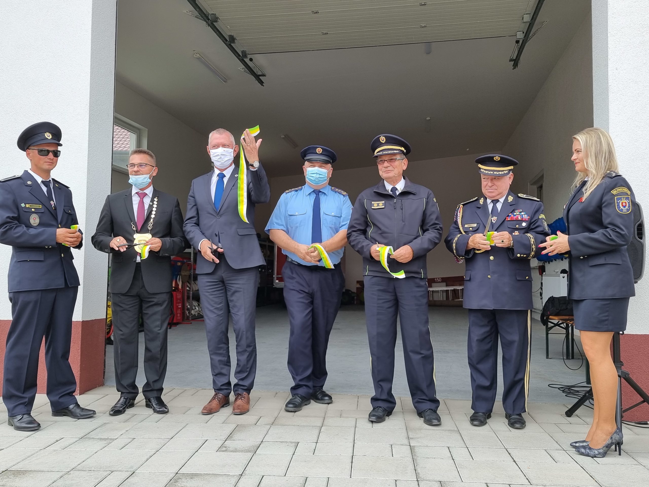 A jelenlévők az átadást szimbolizáló szalag átvágása után megtekintették a helyi tűzoltószertár épületét.