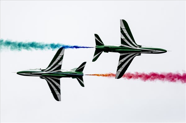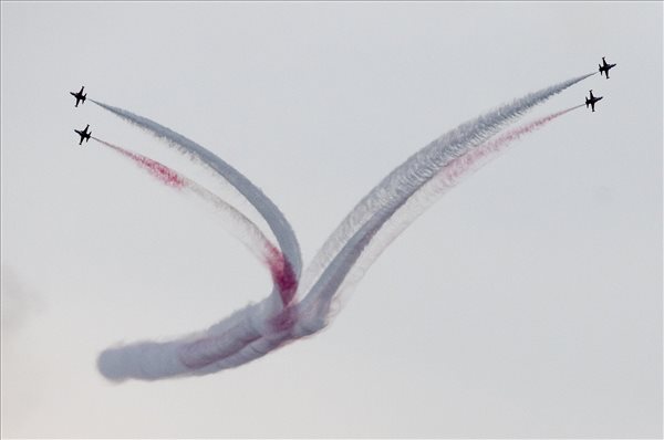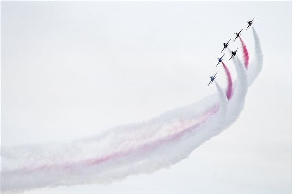 Kecskemét, 2021. augusztus 28. JAS-39 Gripen típusú vadászrepülőgép a kecskeméti nemzetközi repülőnap és haditechnikai bemutató ünnepélyes megnyitója napján az MH 59. Szentgyörgyi Dezső repülőbázison 2021. augusztus 28-án. A kétnapos, augusztus 28. és 29-i rendezvény programjai között számos légi és szárazföldi bemutató szerepel. A magyar légierő mellett mintegy tucat nemzet tart légi bemutatót. MTI/Ujvári SándorKecskemét, 2021. augusztus 28. Dassault Falcon 7X típusú szállító repülőgép (alul) és JAS-39 Gripen típusú vadászrepülőgép a kecskeméti nemzetközi repülőnap és haditechnikai bemutató ünnepélyes megnyitója napján az MH 59. Szentgyörgyi Dezső repülőbázison 2021. augusztus 28-án. A kétnapos, augusztus 28. és 29-i rendezvény programjai között számos légi és szárazföldi bemutató szerepel. A magyar légierő mellett mintegy tucat nemzet tart légi bemutatót. MTI/Ujvári SándorKecskemét, 2021. augusztus 28. Airbus A-319 szállító repülőgép (b) és JAS-39 Gripen típusú vadászrepülőgépek a kecskeméti nemzetközi repülőnap és haditechnikai bemutató ünnepélyes megnyitója napján az MH 59. Szentgyörgyi Dezső repülőbázison 2021. augusztus 28-án. A kétnapos, augusztus 28. és 29-i rendezvény programjai között számos légi és szárazföldi bemutató szerepel. A magyar légierő mellett mintegy tucat nemzet tart légi bemutatót. MTI/Ujvári SándorKecskemét, 2021. augusztus 28. A Svéd Légierő SK 60 típusú repülőgépe a kecskeméti nemzetközi repülőnap és haditechnikai bemutató ünnepélyes megnyitója napján az MH 59. Szentgyörgyi Dezső repülőbázison 2021. augusztus 28-án. A kétnapos, augusztus 28. és 29-i rendezvény programjai között számos légi és szárazföldi bemutató szerepel. A magyar légierő mellett mintegy tucat nemzet tart légi bemutatót. MTI/Ujvári SándorKecskemét, 2021. augusztus 28. Mi-24 harci helikopter a kecskeméti nemzetközi repülőnap és haditechnikai bemutató ünnepélyes megnyitója napján az MH 59. Szentgyörgyi Dezső repülőbázison 2021. augusztus 28-án. A kétnapos, augusztus 28. és 29-i rendezvény programjai között számos légi és szárazföldi bemutató szerepel. A magyar légierő mellett mintegy tucat nemzet tart légi bemutatót. MTI/Ujvári SándorKecskemét, 2021. augusztus 28. JAS-39 Gripen típusú vadászrepülőgép a kecskeméti nemzetközi repülőnap és haditechnikai bemutató ünnepélyes megnyitója napján az MH 59. Szentgyörgyi Dezső repülőbázison 2021. augusztus 28-án. A kétnapos, augusztus 28. és 29-i rendezvény programjai között számos légi és szárazföldi bemutató szerepel. A magyar légierő mellett mintegy tucat nemzet tart légi bemutatót. MTI/Ujvári SándorKecskemét, 2021. augusztus 28. Benkő Tibor honvédelmi miniszter beszédet mond, mellette Ruszin-Szendi Romulusz altábornagy, a Magyar Honvédség parancsnoka (j) a kecskeméti nemzetközi repülőnap és haditechnikai bemutató ünnepélyes megnyitóján az MH 59. Szentgyörgyi Dezső repülőbázison 2021. augusztus 28-án. A kétnapos, augusztus 28. és 29-i rendezvény programjai között számos légi és szárazföldi bemutató szerepel. A magyar légierő mellett mintegy tucat nemzet tart légi bemutatót. MTI/Ujvári SándorKecskemét, 2021. augusztus 28. A Szaudi Királyi Légierő Saudi Hawks kötelékbemutatója a kecskeméti nemzetközi repülőnap és haditechnikai bemutató első napján az MH 59. Szentgyörgyi Dezső repülőbázison 2021. augusztus 28-án. A kétnapos, augusztus 28. és 29-i rendezvény programjai között számos légi és szárazföldi bemutató szerepel. A magyar légierő mellett mintegy tucat nemzet tart légi bemutatót. MTI/Ujvári SándorKecskemét, 2021. augusztus 28. A Szaudi Királyi Légierő Saudi Hawks kötelékbemutatója a kecskeméti nemzetközi repülőnap és haditechnikai bemutató első napján az MH 59. Szentgyörgyi Dezső repülőbázison 2021. augusztus 28-án. A kétnapos, augusztus 28. és 29-i rendezvény programjai között számos légi és szárazföldi bemutató szerepel. A magyar légierő mellett mintegy tucat nemzet tart légi bemutatót. MTI/Ujvári SándorKecskemét, 2021. augusztus 28. A Szaudi Királyi Légierő Saudi Hawks kötelékbemutatója a kecskeméti nemzetközi repülőnap és haditechnikai bemutató első napján az MH 59. Szentgyörgyi Dezső repülőbázison 2021. augusztus 28-án. A kétnapos, augusztus 28. és 29-i rendezvény programjai között számos légi és szárazföldi bemutató szerepel. A magyar légierő mellett mintegy tucat nemzet tart légi bemutatót. MTI/Ujvári SándorKecskemét, 2021. augusztus 28. A Szaudi Királyi Légierő Saudi Hawks kötelékbemutatója a kecskeméti nemzetközi repülőnap és haditechnikai bemutató első napján az MH 59. Szentgyörgyi Dezső repülőbázison 2021. augusztus 28-án. A kétnapos, augusztus 28. és 29-i rendezvény programjai között számos légi és szárazföldi bemutató szerepel. A magyar légierő mellett mintegy tucat nemzet tart légi bemutatót. MTI/Ujvári SándorKecskemét, 2021. augusztus 28. Főtiszt ejtőernyős ugrás közben a kecskeméti nemzetközi repülőnap és haditechnikai bemutató első napján az MH 59. Szentgyörgyi Dezső repülőbázison 2021. augusztus 28-án. A kétnapos, augusztus 28. és 29-i rendezvény programjai között számos légi és szárazföldi bemutató szerepel. A magyar légierő mellett mintegy tucat nemzet tart légi bemutatót. MTI/Ujvári SándorKecskemét, 2021. augusztus 28. JAS-39 Gripen típusú vadászrepülőgép a kecskeméti nemzetközi repülőnap és haditechnikai bemutató első napján az MH 59. Szentgyörgyi Dezső repülőbázison 2021. augusztus 28-án. A kétnapos, augusztus 28. és 29-i rendezvény programjai között számos légi és szárazföldi bemutató szerepel. A magyar légierő mellett mi