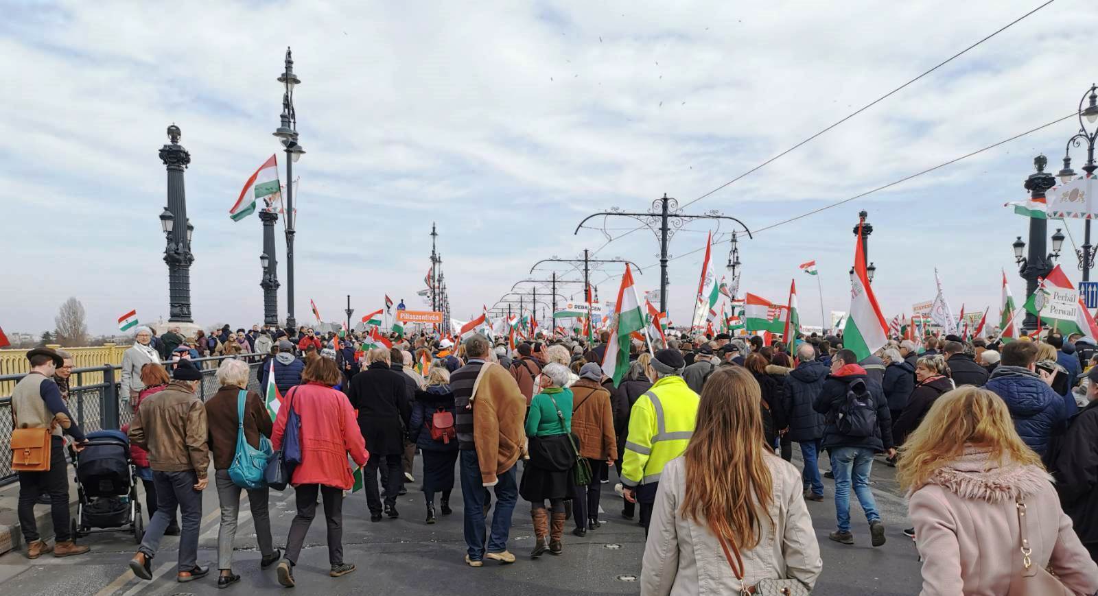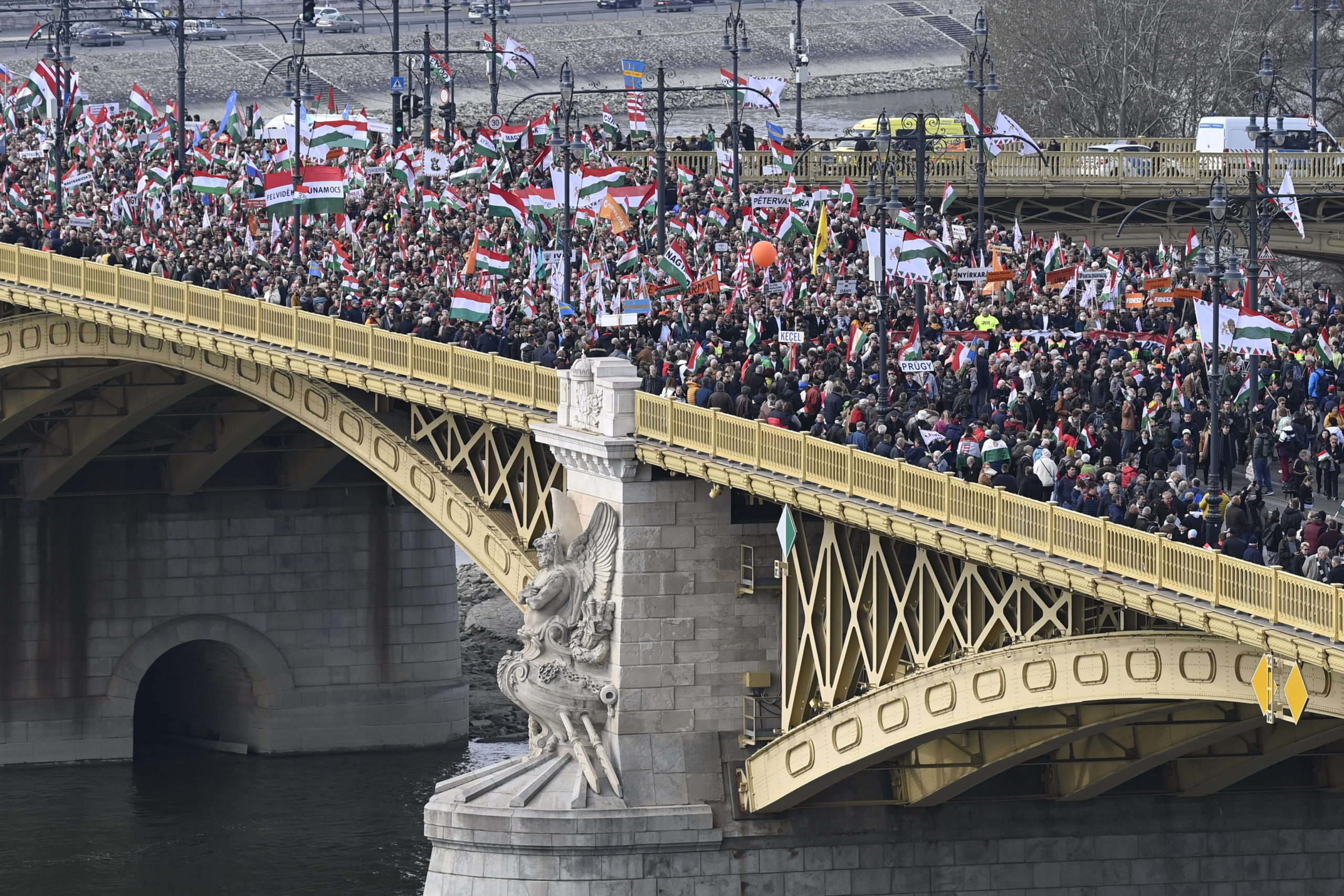 Elárasztották Budapestet a Békemenet résztvevői. A magyar fővárosban több millióan vonulnak az utcákon és a Margit hídon, mely teljesen megtelt.