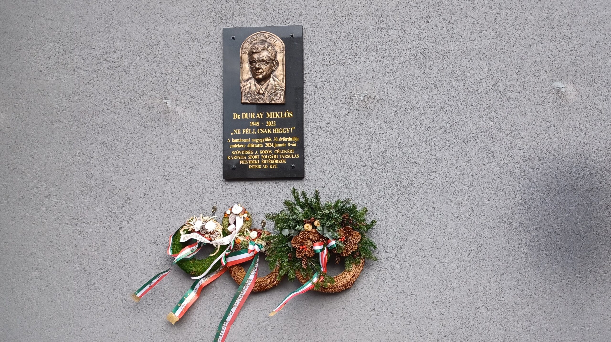 2024 január 8-án a Felvidéki Értékőrzők és a Kárpátia Sport Polgári Társulás főszervezésében, továbbá az INTERCAD vállalat, valamint több civil, társadalmi, politikai szervezet képviselőinek, és a történelmi egyházak lelki vezetőinek közreműködésével emléktáblát avattak Komáromban DURAY MIKLÓS politikus, közíró, címzetes egyetemi docens tiszteletére, s mindennek keretében megemlékeztek az 1994. január 8-án tartott Komáromi Nagygyűlés 30. évfordulójáról.