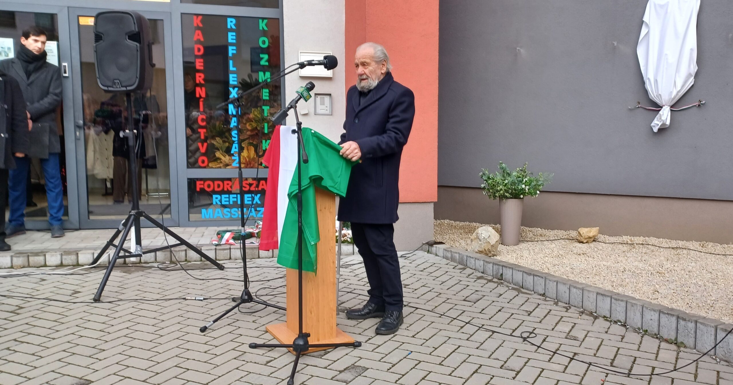 Az emléktábla elhelyezésére az Eötvös utca 3. szám alatti INTERCAD hajótervezési vállalat épületének külső falán került sor. Az ünnepséget Mihacs Szilvia, a Felvidéki Értékőrzők alelnöke nyitotta meg, név szerint üdvözölve a magas pozíciókat betöltő anyaországi, erdélyi, és felvidéki küldötteket.